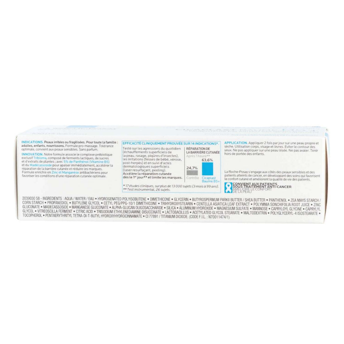Contains Panthenol 5% - Also known as Vitamin B5, Madecassoside, Glycerin and Shea Butter and La Roche-Posay Thermal Spring Water.