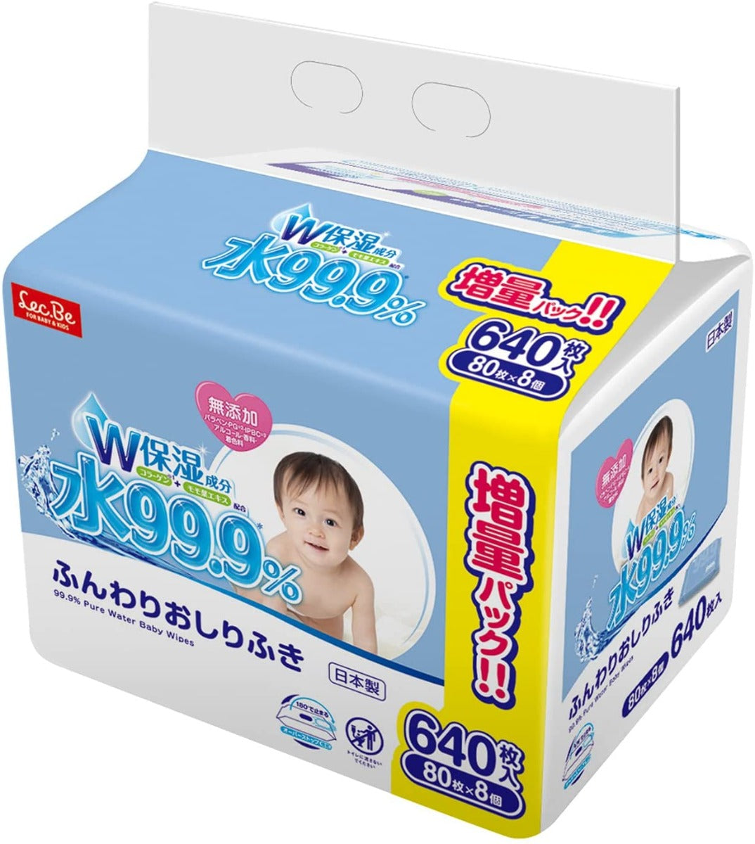 Product Contains: 8 Pack x LEC 99.9% Pure Water Baby Soft Wet Wipes, 80pcs = 640pc