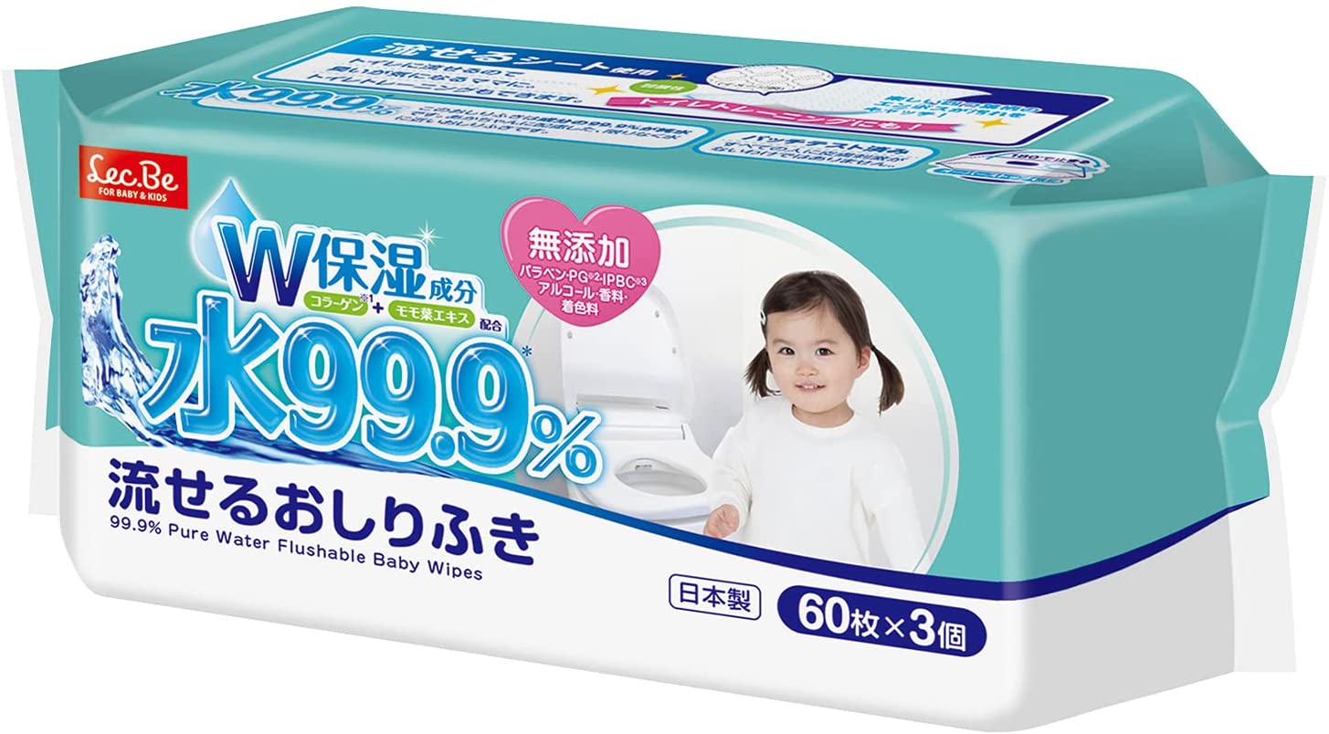 Product Contains: 3 Pack x LLEC 99.9% Pure Water Flushable Baby Wet Wipes, 60pc = 180pc