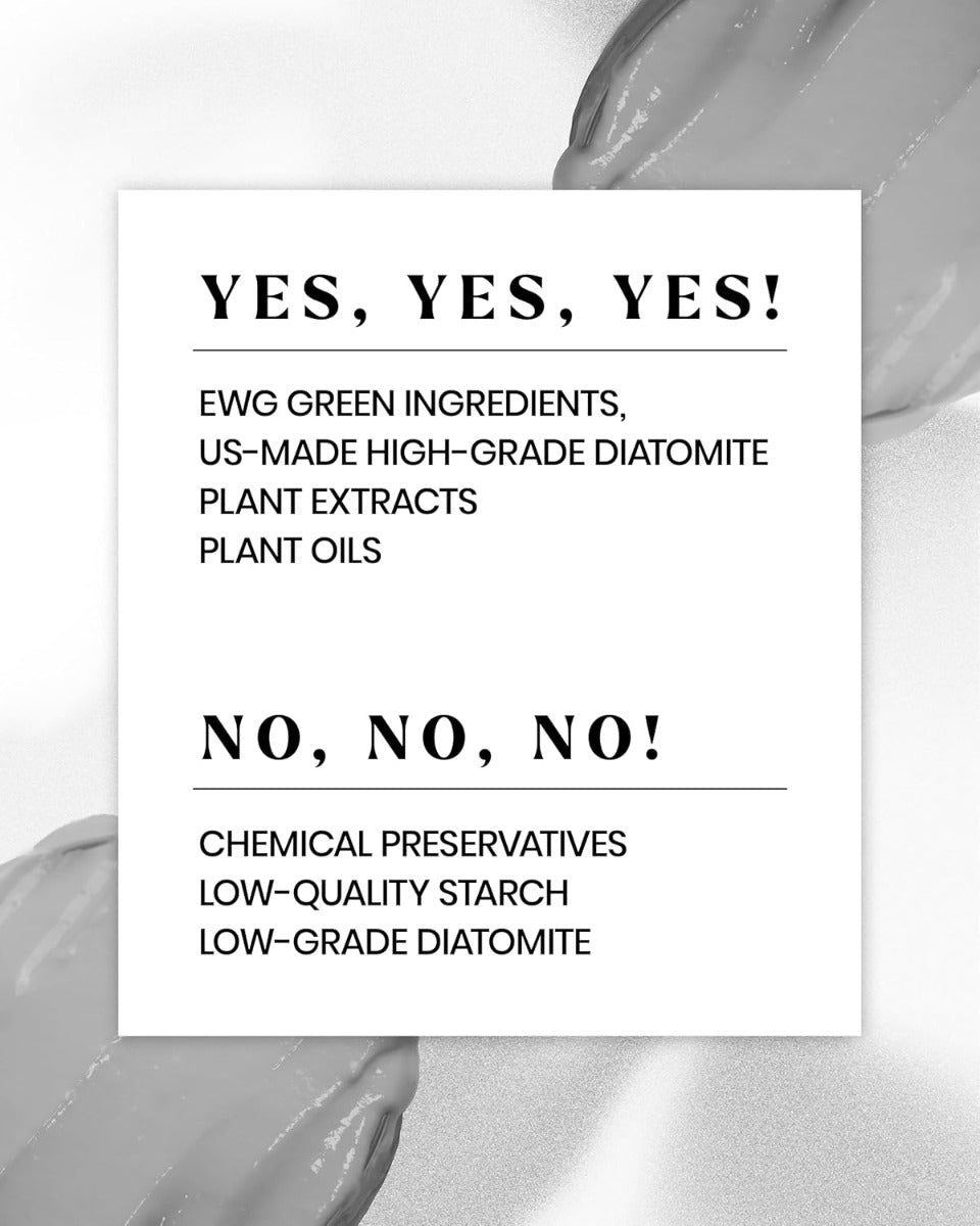 Diatomatious Earth, Glucose, Alginate, Calcium Sulfate, Tetrapotassium Pyrophosphate, Magnesium Carbonate, Allantoin, Charcoal Extract, Potassium Alginate, Centella Asiatica, Portulaca Oleracea Extract, Black Oxide Of Iron, Cellulose Gum, Sodium Benzoate, Peppermint Oil, Fragrance.