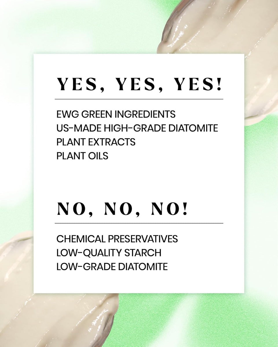 Diatomatious Earth, Calcium Sulfate, Glucose, Alginate, Tetrapotassium Pyrophosphate, Cellulose Gum, Maltodextrin, Monoglyceride, Lactococcus Lactis, Tea Tree Extract, Allantoin, Potassium Alginate, Adenosine, Aloe Vera Extract, Portulaca Oleracea Extract, Betain, Ultramarine, Peppermint Oil.
