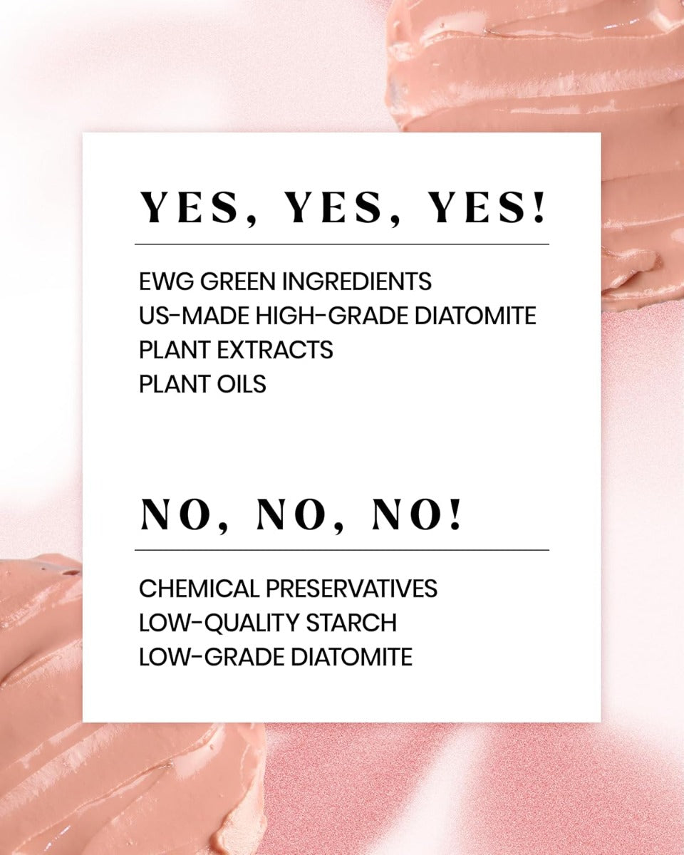 Diatomatious Earth, Calcium Sulfate, Glucose, Alginate, Tetrapotassium Pyrophosphate, Cellulose Gum, Maltodextrin, Monoglyceride, Lactococcus Lactis, Calendula Extract, Allantoin, Potassium Alginate, Adenosine, Aloe Vera Extract, Portulaca Oleracea Extract, Scutelleria Baicalensis, Centella Asiatica, Hydrated Ferric Oxide, Fragrance.