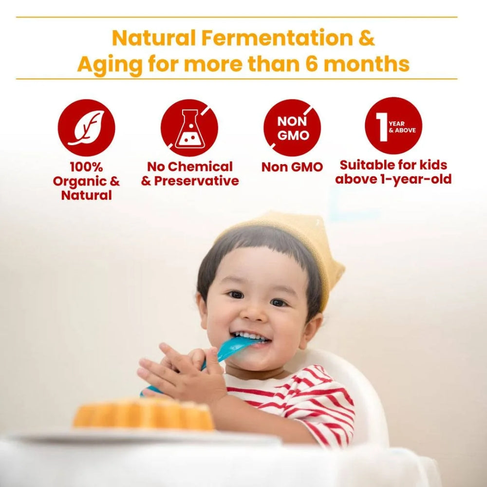 - Our healthy soy sauce adds depth of flavor and a hint of age-old umami richness to porridge and baby meals.