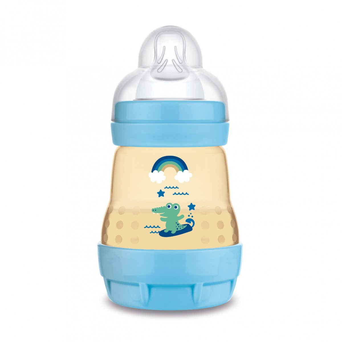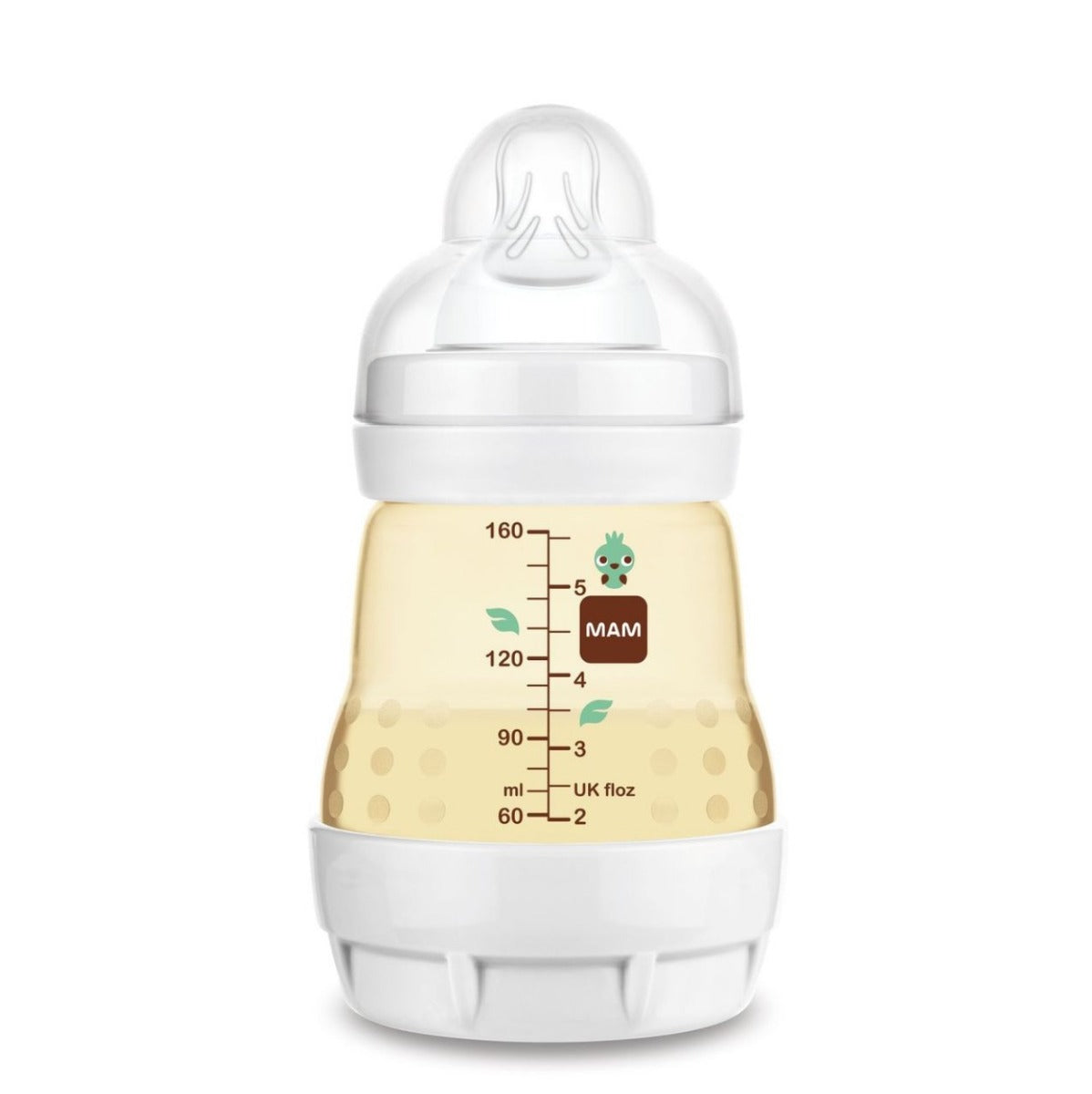 MAM Easy Start Anti-Colic Premium PPSU Milk Bottle is an ideal bottle for newborns, allowing babies to drink at their own relaxed pace, designed to minimise colic symptoms by reducing the amount of air swallowed while feeding. The vented base allows for an even drinking flow so babies can remain calm and relaxed without swallowing air. The vented base can help to reduce colic in 80 per cent of cases**, leaving nights quieter and babies happier. The bottle comes with a spill-proof lid and a measuring scale on the side so you can ideally measure even the smallest amounts of baby formula or breast milk. Comes with MAM Slow-Flow Skin Soft Silicone teat which is silky soft and provides a familiar feel for babies. 94 Percent* of babies accept MAM teats meaning MAM baby bottles are ideal for making the switch.
