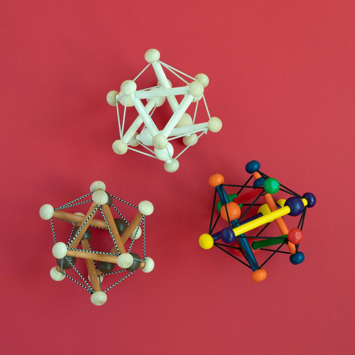 The award winning Skwish fascinates babies with its twisted web of rods, strings, and beads. Skwishes and returns to its original shape, with beads that slide and rattle. Skwish natural is made from renewable rubberwood.
