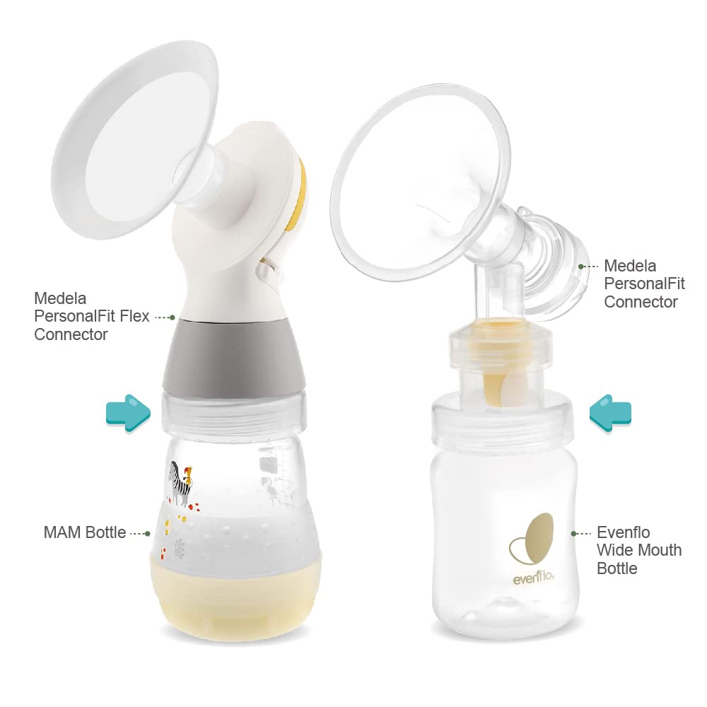 Maymom Conversion Kit for Medela Pumps to Lansinoh, MAM, Pigeon Bottles is a set of two bottle converted that allows you to pump directly from your Medela Pumps (please find below for compatible pumps) into Lasinoh, MAM and Pigeon Bottles.