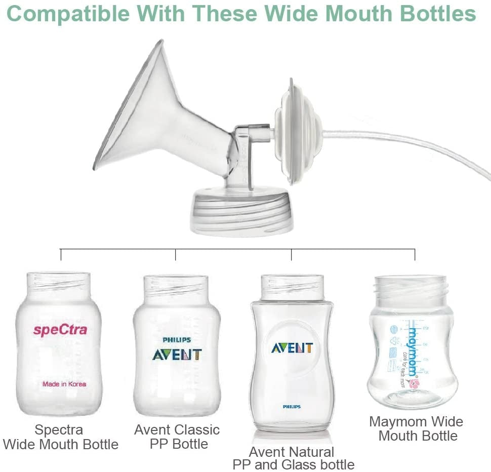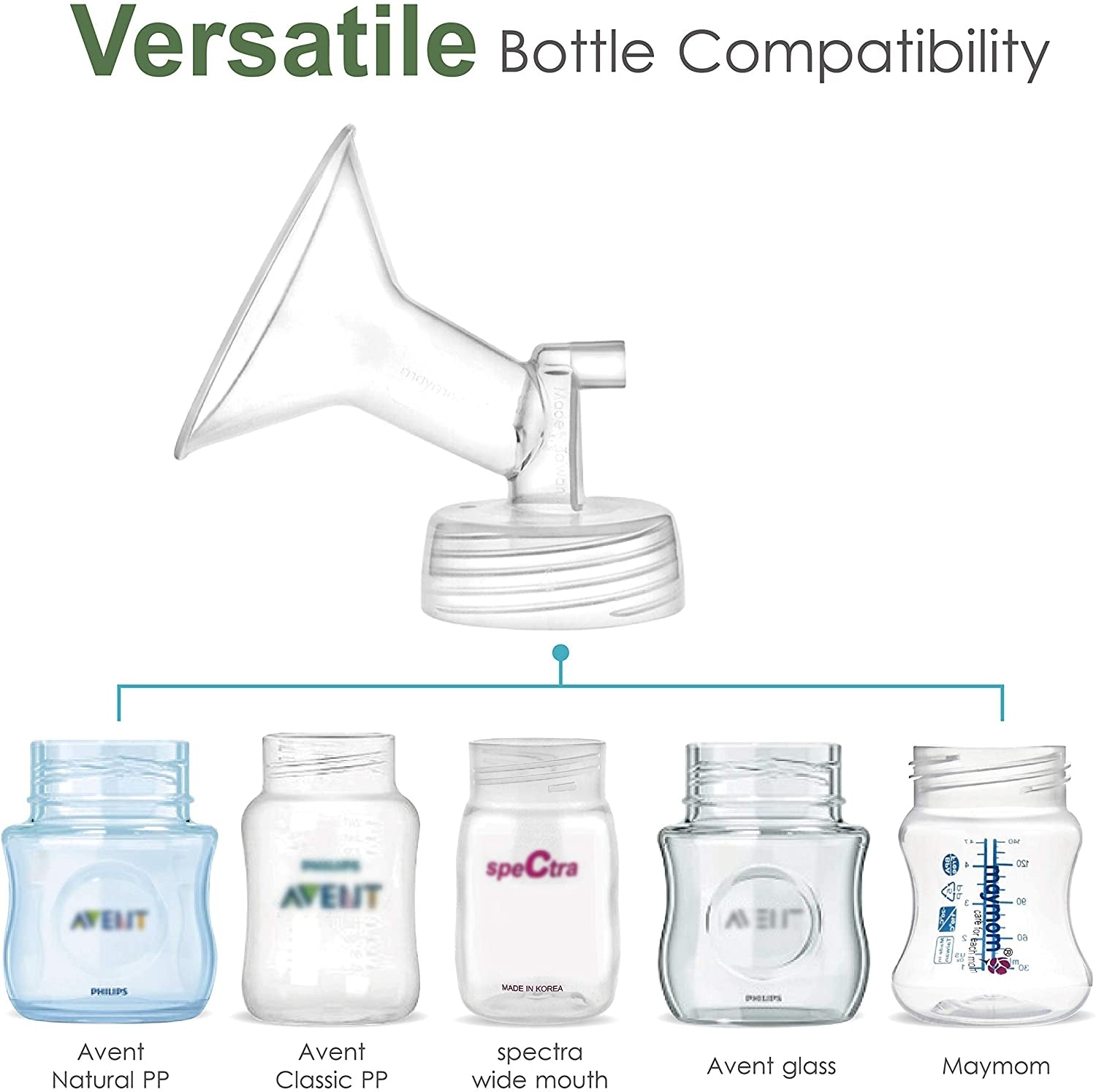 Maymom Flange for Spectra (Wide-Neck) is a breastshield and connector in one that connects to Spectra and Medela Breastpumps for pumping into wide-neck milk bottles. This one-piece design makes for easier cleaning, less chance of losing suction, and less parts to bring when you are on the go.