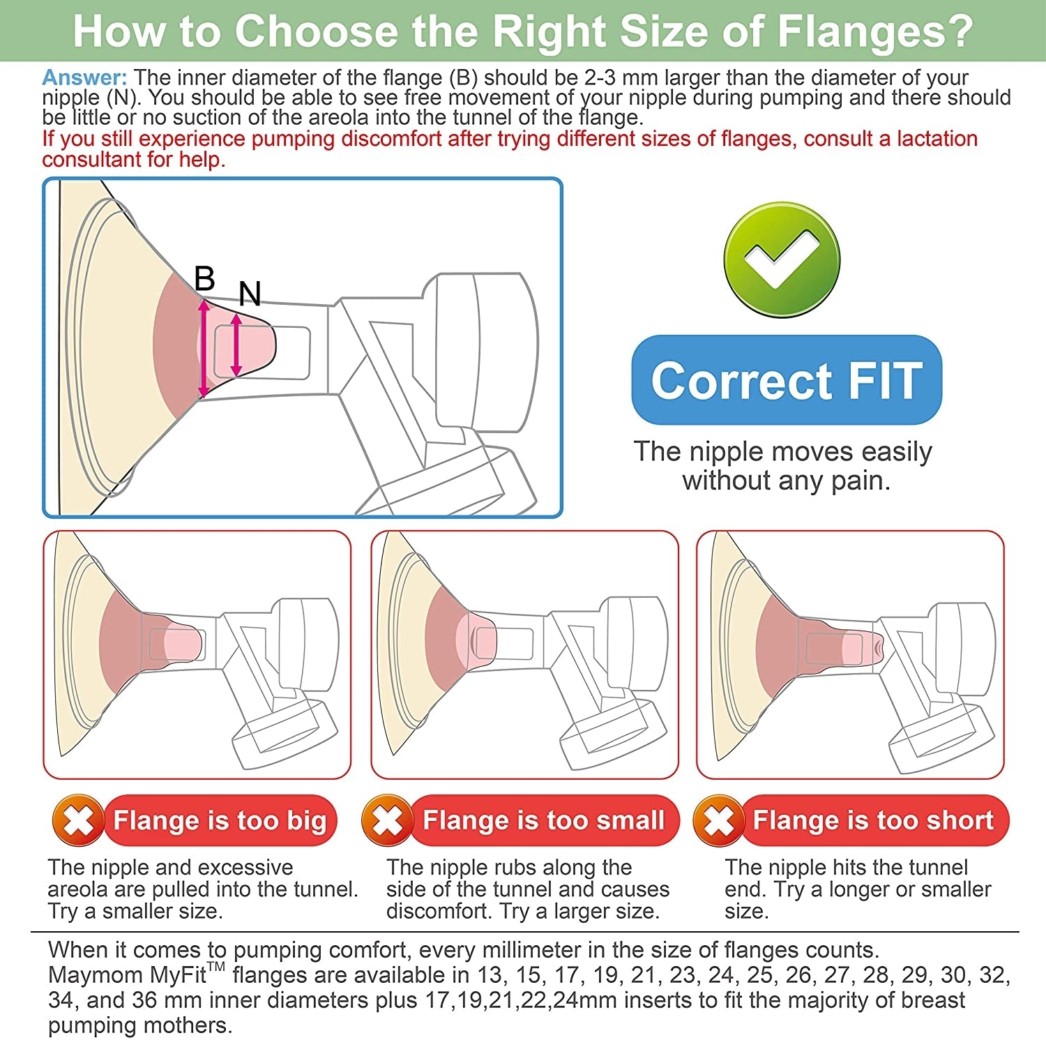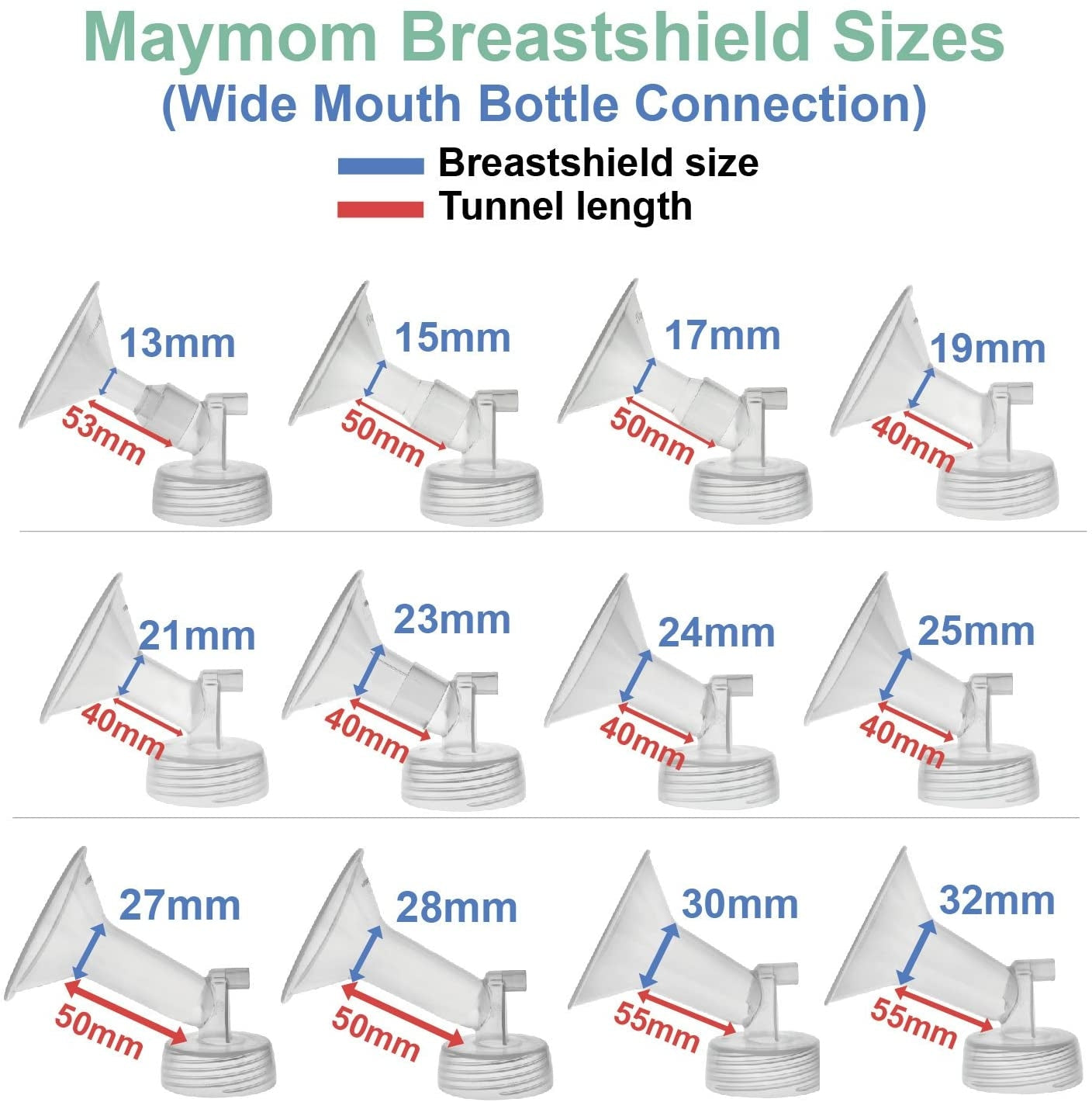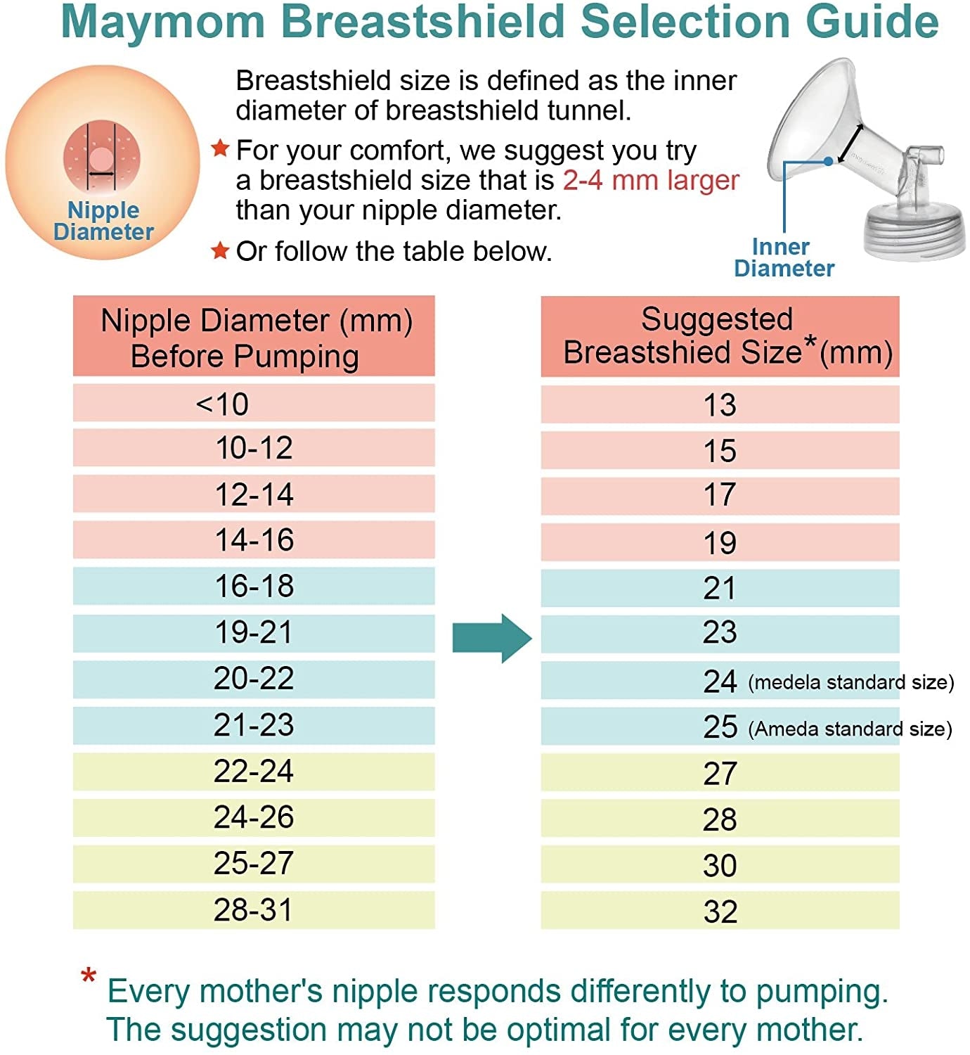 When it comes to pumping comfort, every millimeter counts. That is why we design a series of breastshields of small increment sizes. Maymom one-piece breastshields are available in many different sizes (refer to dropdown selection for range of available sizes) to fit the majority of breast pumping mothers.