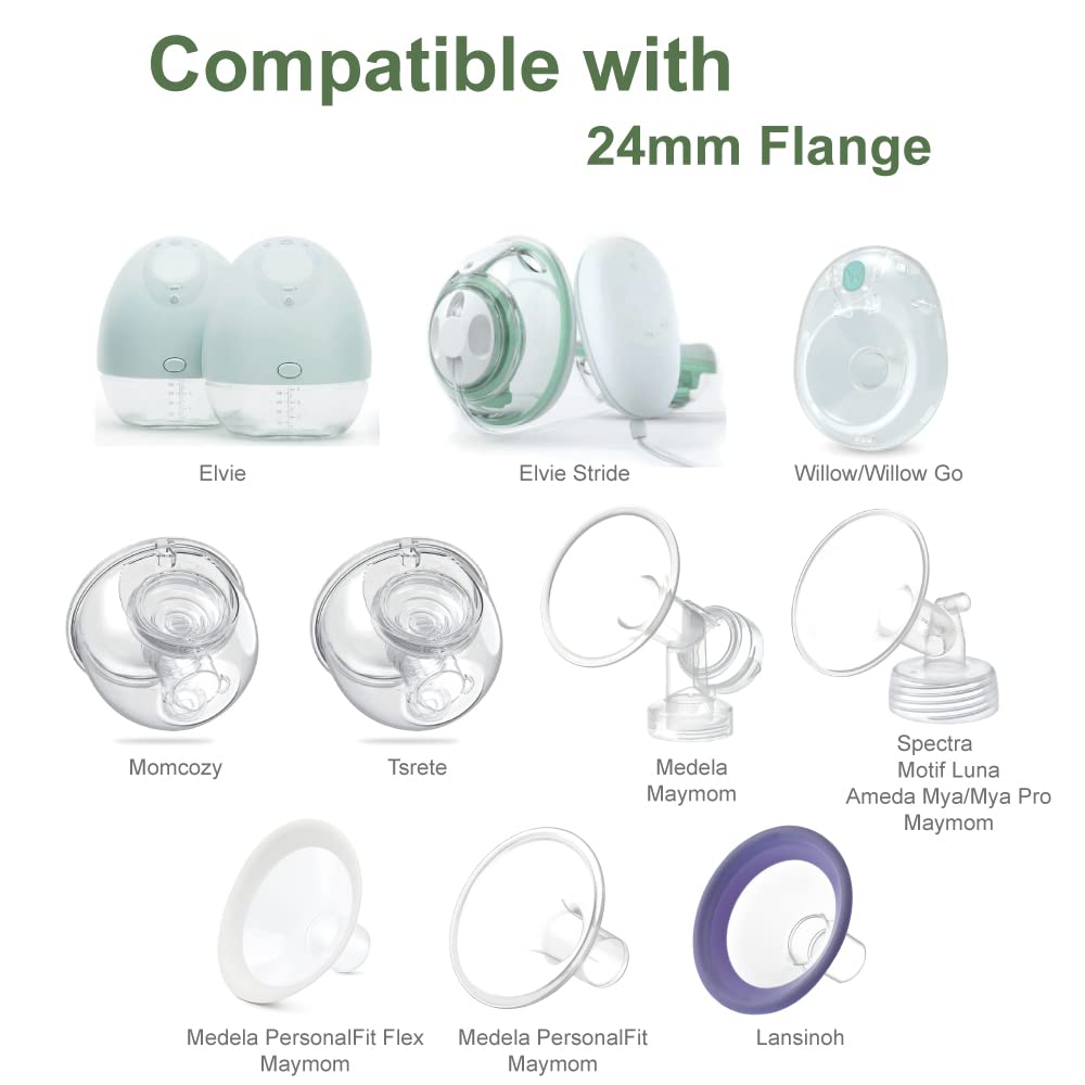 Maymom Flange Inserts for Medela PersonalFit Flex is a pack of two inserts that are compatible with 24mm Medela PersonalFit Flex, Medela Personal Fit and more (Elvie, S9, S10, S12 (24mm Cup)/ LegendaryMilk (24mm Cup)/Tsrete Wearable silicone Cups (24mm Cup) Motif Luna 24mm flange, Ameda Mya 24mm flange, Ameda Mya Pro 24mm flange) Maymom inserts are great to reduce nipple size for a more comfortable fit. Made by Maymom