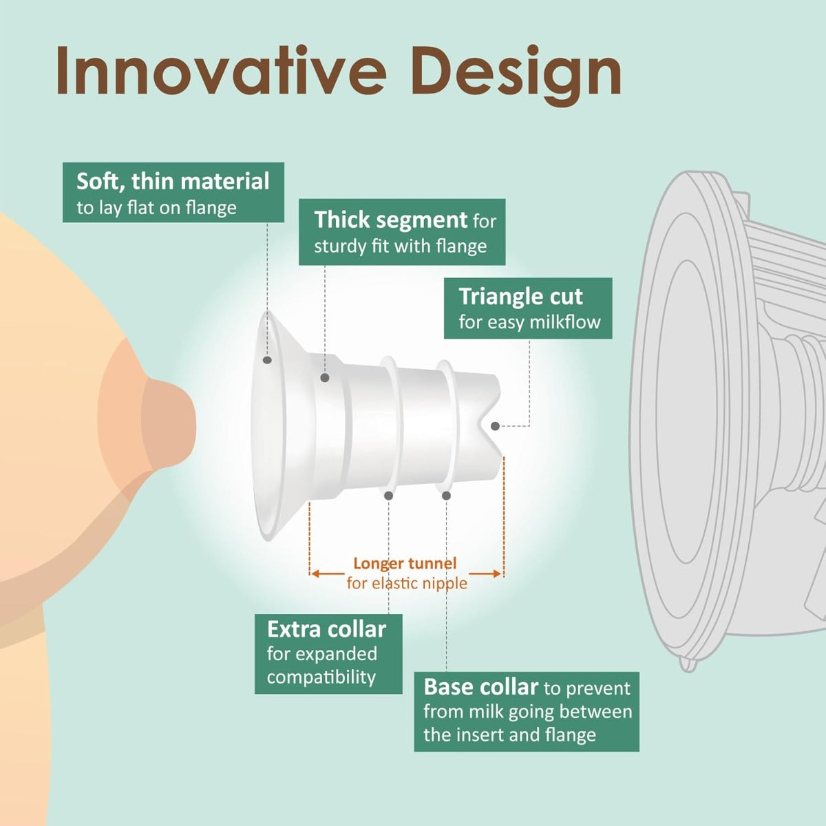 Maymom Silicone Flange Inserts for Medela & Spectra 24mm Breastshield (Long Plus), 2pc (7 Sizes)
