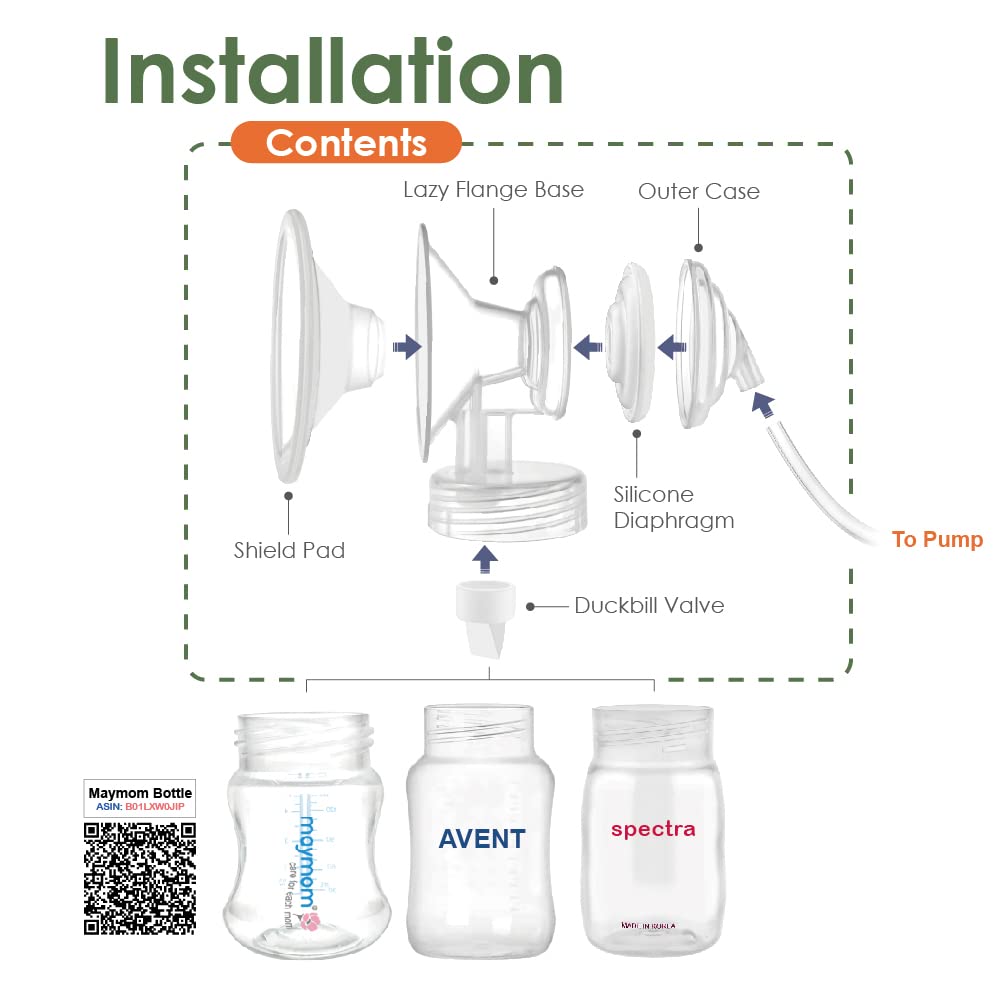 Maymom Lazy Flange Kit for Spectra is a unique ergonomic design closed system flange kit to help enable laidback pumping and eases back pains, ideal for C-section mothers. Say goodbye to sitting upright whilst pumping which causes back pains. This kit contains 2 x set of flange, valve, duckbill, tube, shield pad, backflow protector case. Pumping can be easy and relaxing!