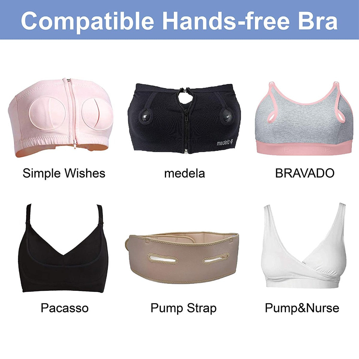 Examples: Simple Wishes, Medela Bra, Pump Strap, Momcozy, Pacasso, Bravado