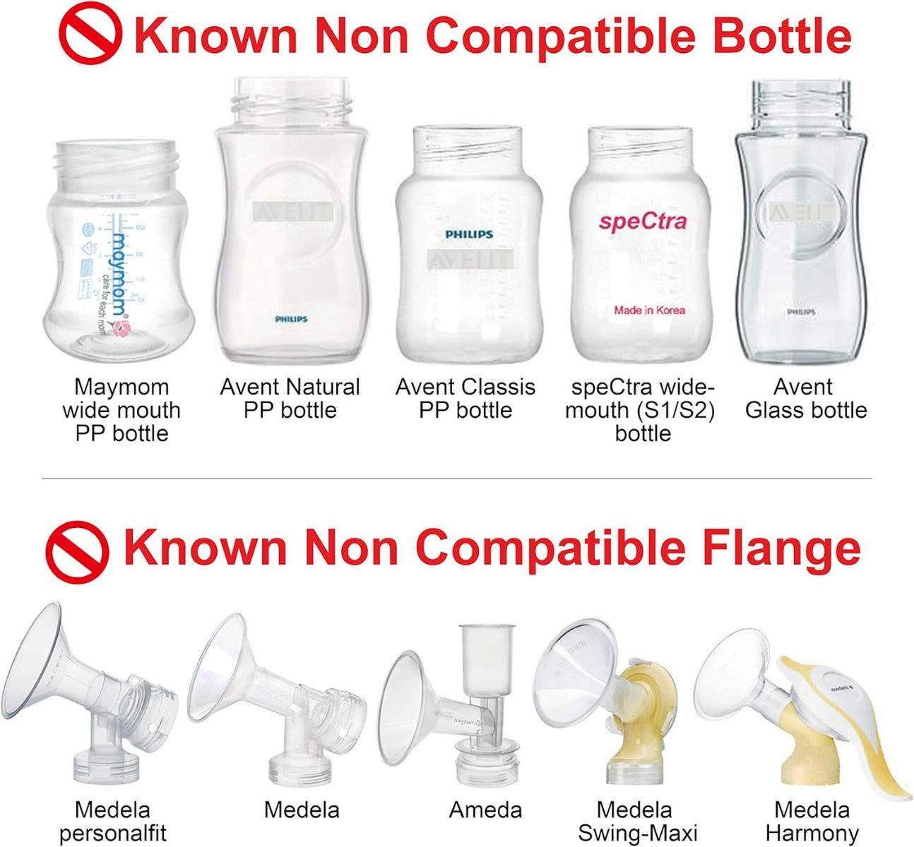 - Compatible with Spectra S1/S2 Flanges to use with Standard Size Botles like Medela/Original Dr Brown Bottles (Please refer to compatibility image)