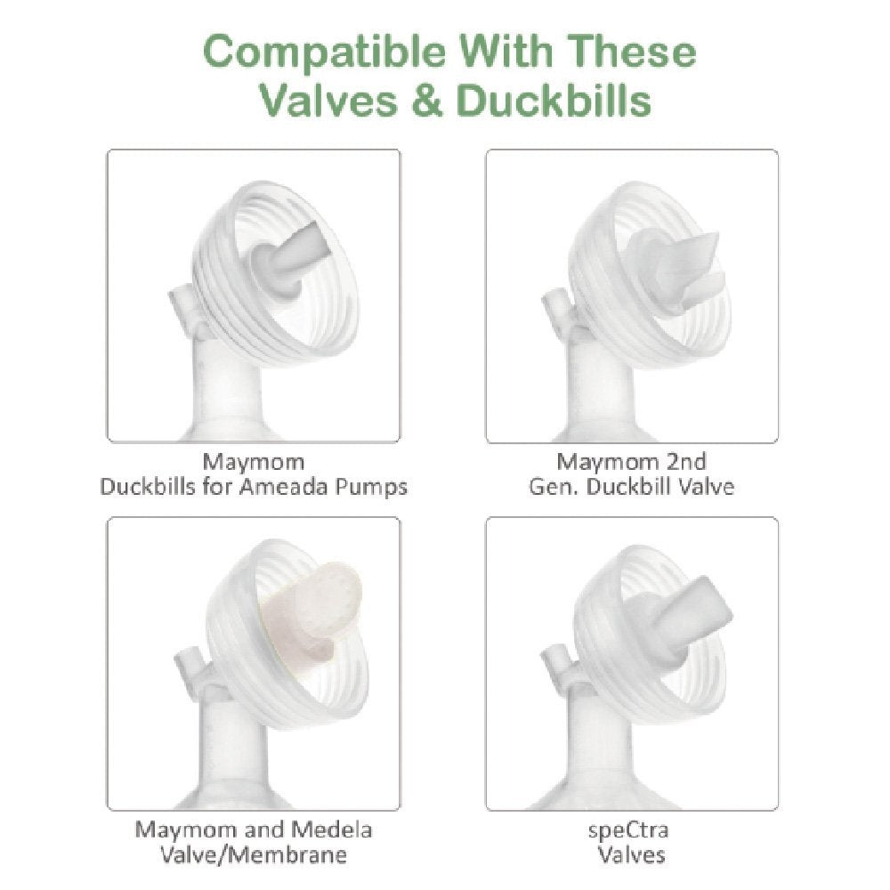 Maymom Flange for Spectra with Valve & Membrane (Wide-Neck) is a breast shield and connector in one that connects to Spectra Breastpumps for pumping into wide-neck milk bottles. It contains a flange, a valve and a membrane. This one-piece design makes for easier cleaning, less chance of losing suction, and less parts to bring when you are on the go.