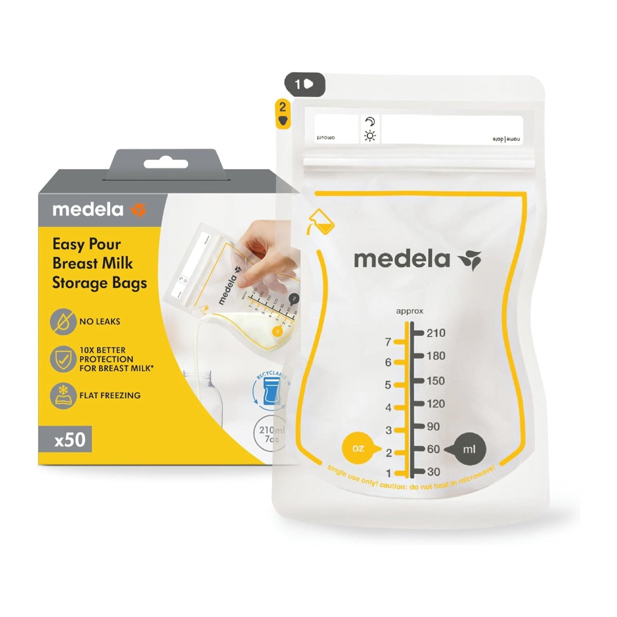 Medela Easy Pour Breast Milk Storage Bags are convenient, ready-to-use breast milk storage bags.to store, transport and warm breast milk. Our unique spouts make it easy to use and deliver a mess free experience. A BONUS resealable transport pouch is included to help keep the bags clean and organized.