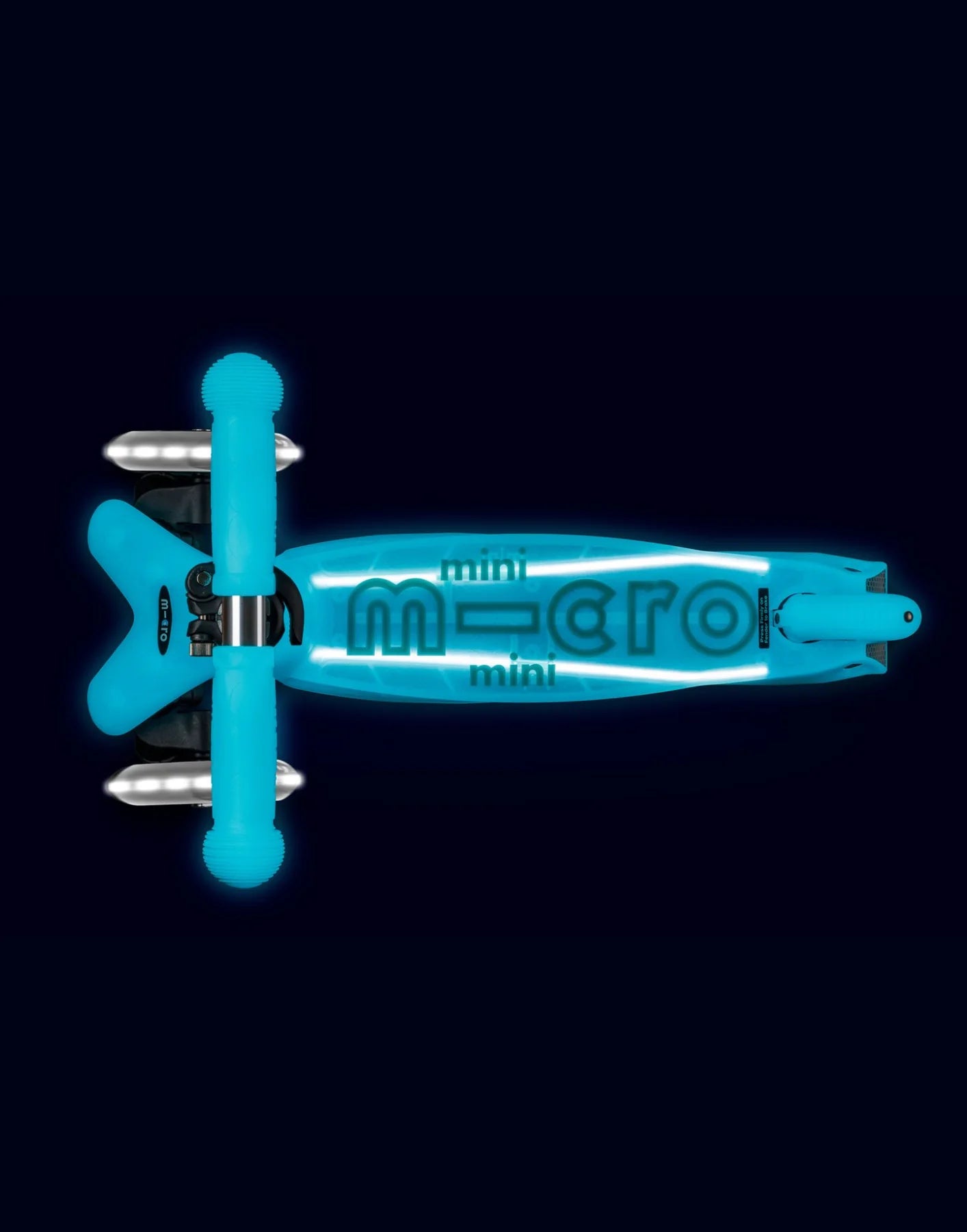 Micro Mini Glow LED Plus Scooter is a one-of-a-kind engineering masterpiece providing glowing adventures every single time.Powered by natural or UV light the deck, brake, handlebar and handlebar logo all emit a soft glow day or night . A great way to stand out from the crowd. For extra glimmer, the Mini Glow LED is topped off with ingenious light-up LED wheels which use induction energy to turn the power kids create as they scoot into bright white light. No batteries. No fuss.