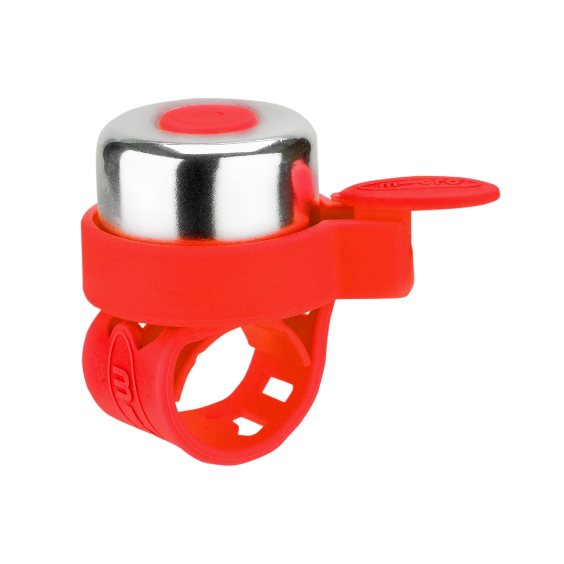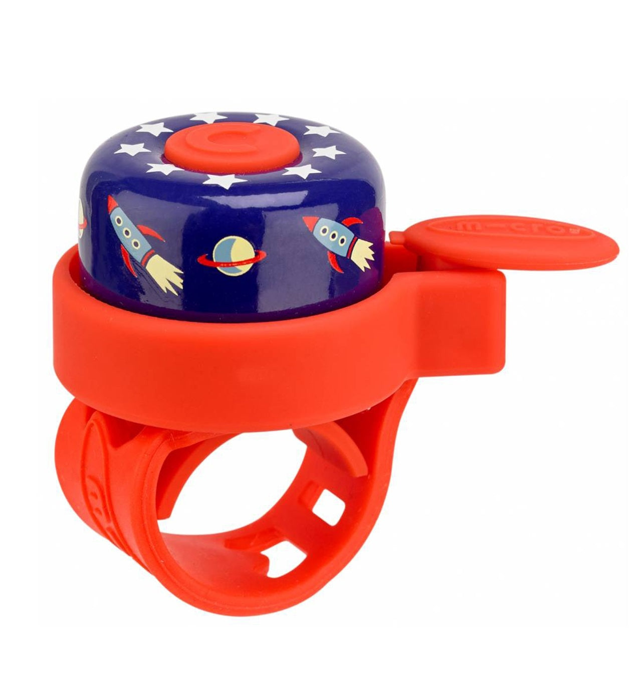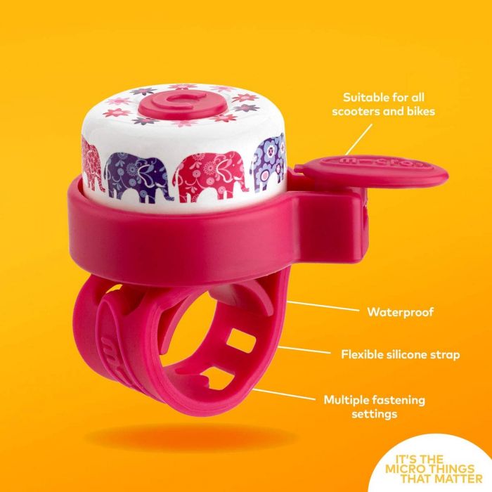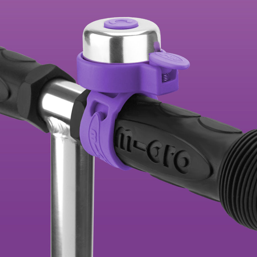 Micro Scooter Bell is a scooter bell to fasten on to your Micro scooters or trikes. It has a silicone strap and 3 adjustment levels. It secures by fastening the silicone hook on to the slots. Use it on on your own scooter, bicycle and trike.