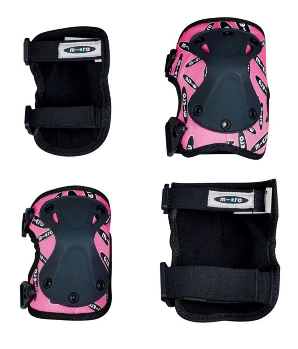 Micro Scooter Knee & Elbow Guards are for protection of elbows and knees from getting scraped while scootering, cycling or skating. These are adjustable guards that come in 2 sizes. They are secured by adjustable velcro straps. They provide padding and shell to give kids an extra protection from scrapes and bruises.