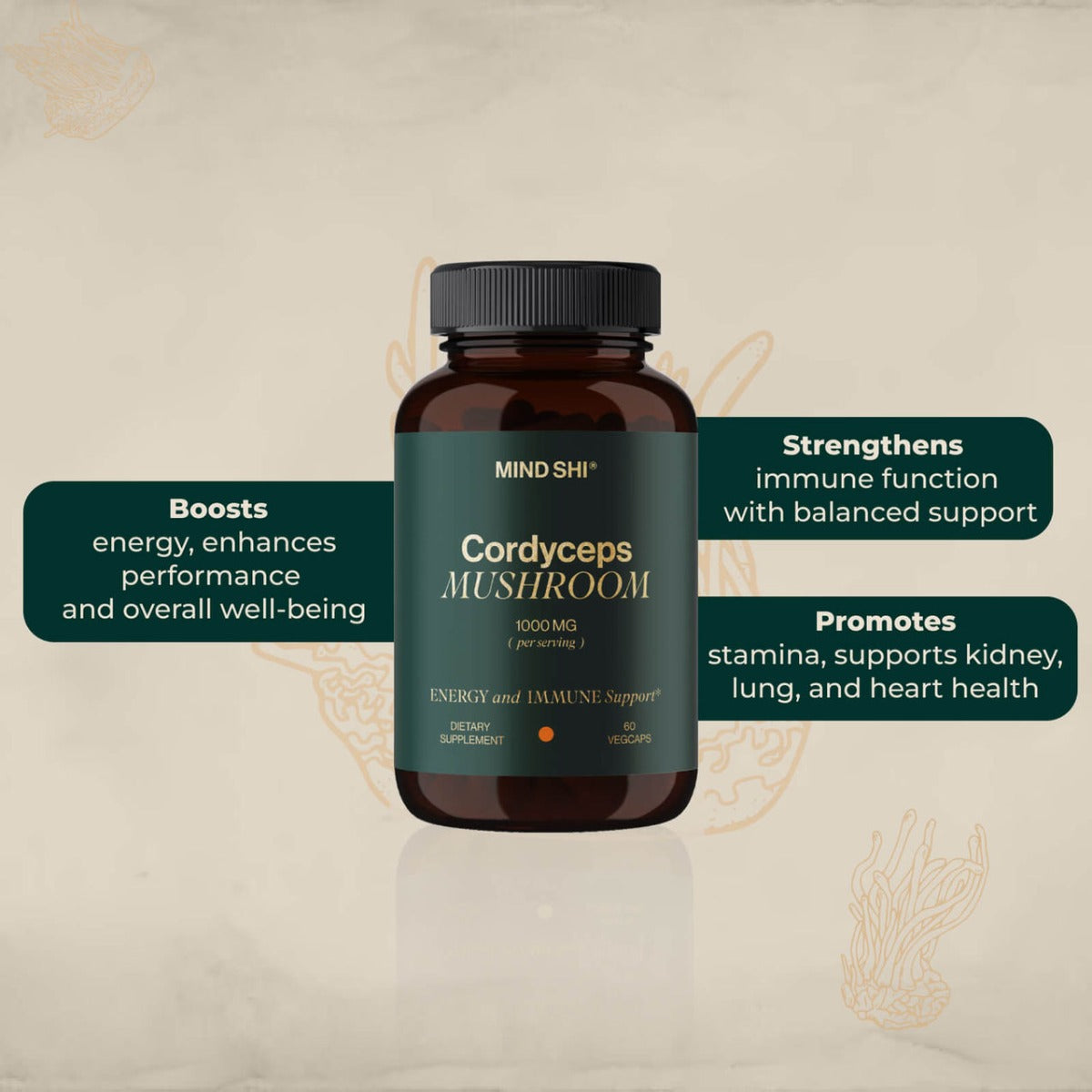 At Mind Shi, we are dedicated to delivering high-quality, organic, vegan, and non-GMO supplements. Our Cordyceps Mushroom formula helps boost energy, enhance endurance, and support immune function. We prioritize clean ingredients and rigorous quality standards, so you can trust that you're getting a supplement that truly supports your energy levels, stamina, and overall health.