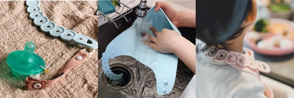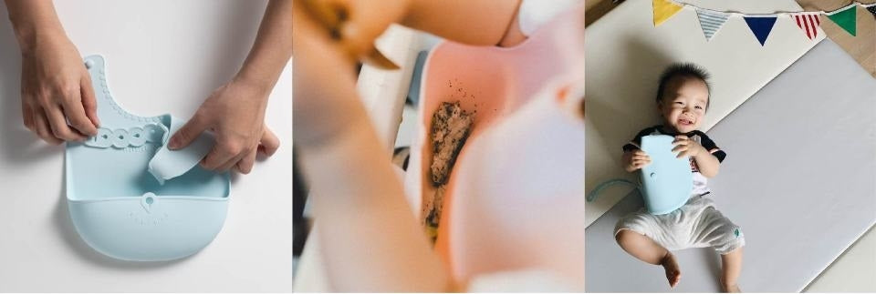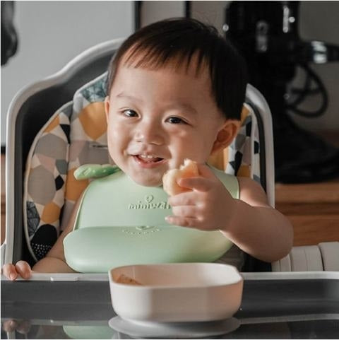 Miniware Silibib Silicone Bib is a comfortable and durable food grade silicone bib perfect for active, outgoing families with its compact roll and button function. Just roll, button up and store to clean up later while on the go! Silibib is longer and wider than other bibs to support your child through all feeding and growth development stages. A must-have when your baby begins to self-feed. Roll, button and store for no hassle clean up.