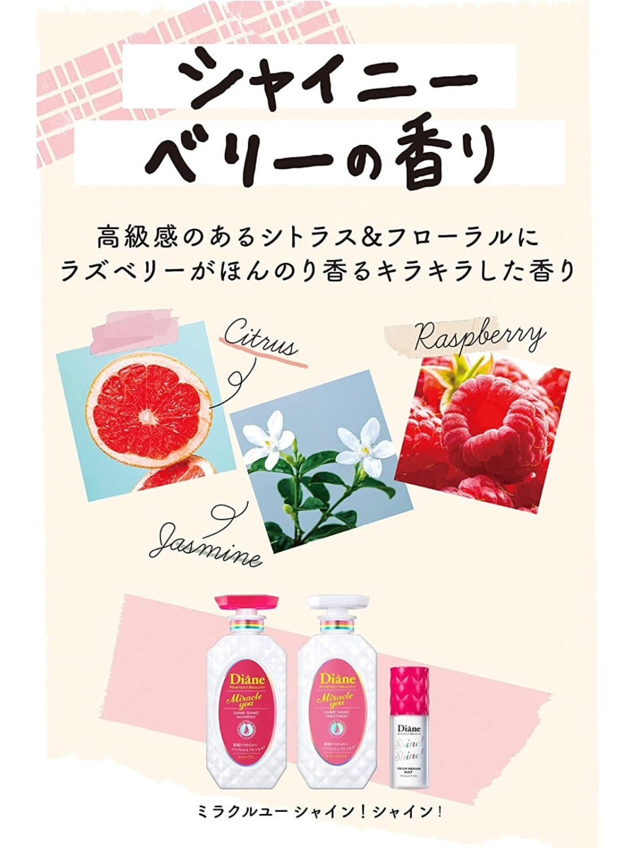 Moist Diane Miracle You Shine! Shine! Treatment is a series that repairs deep into the hair and focuses on light reflection and hair shine. With a unique prism repair formula that repairs deep into the hair and transforms from the core to the shiny hair that is smooth and prisim-like shine. With Japan’s 1st blend of gold + platinum keratin, prism coat and erucalactone that nourishes hair from the core for a beautiful radiance!