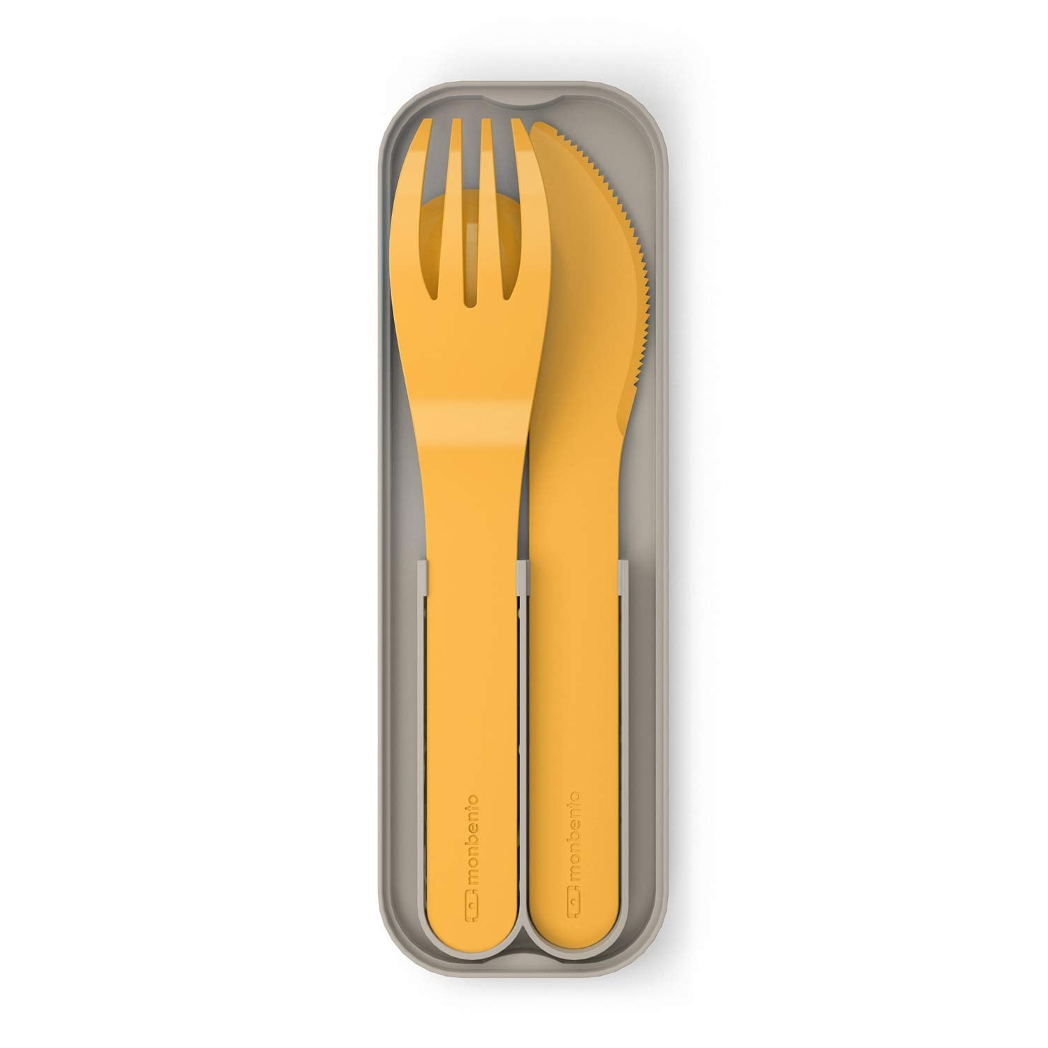 Monbento MB Pocket Cutlery Set with Case is a portable biodegradable, reusable plastic fork, knife, spoon cutlery set that comes in a case. It is compact and slips under the Monbento lunch box’s top lid for a perfect fit to travel with you for all your packed lunches! This compact and practical cutlery set goes everywhere with ease: to the office, on a picnic, camping, or even on a plane!