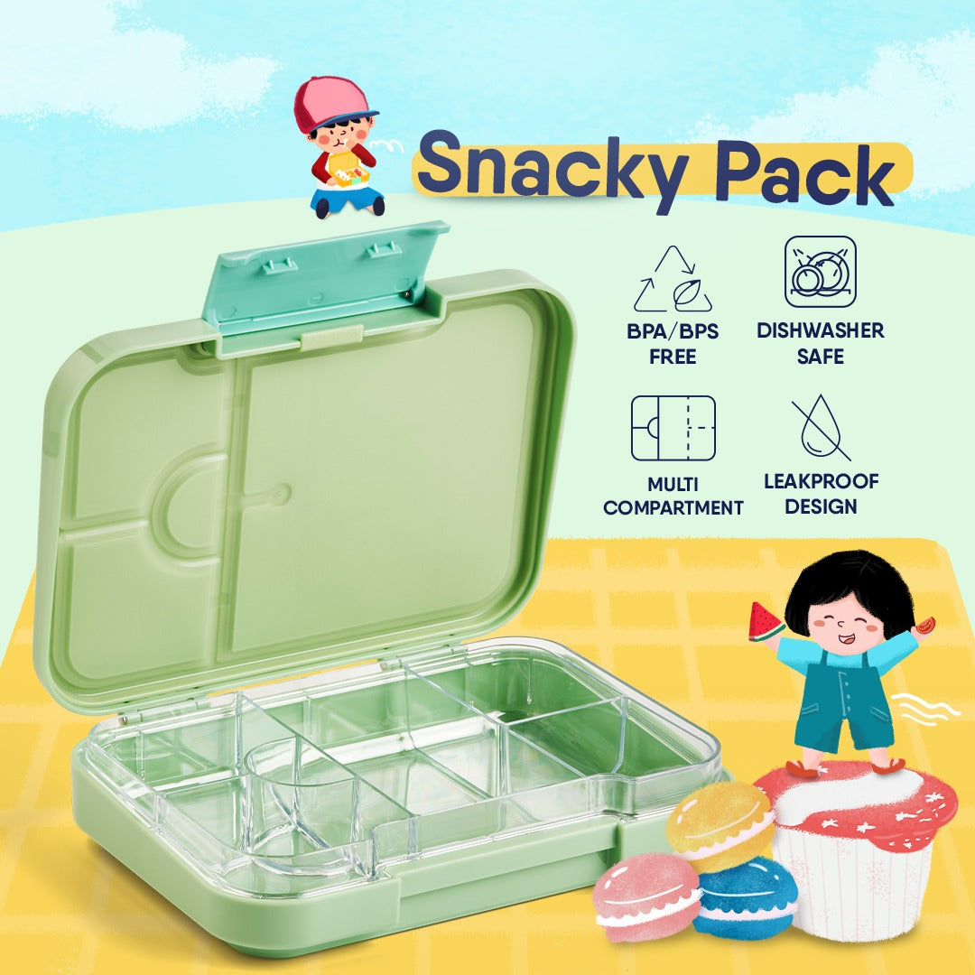 Montigo Snacky Pack is a snack box that is equipped with multiple compartments and a secure lock system, our Snacky Pack is perfect for on-the-go snacking! Its removable layer ensures easy cleaning; the BPA-free material guarantees a safe meal. Goodbye, boring snacks. Hello, more varieties.