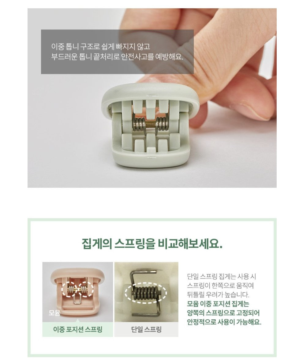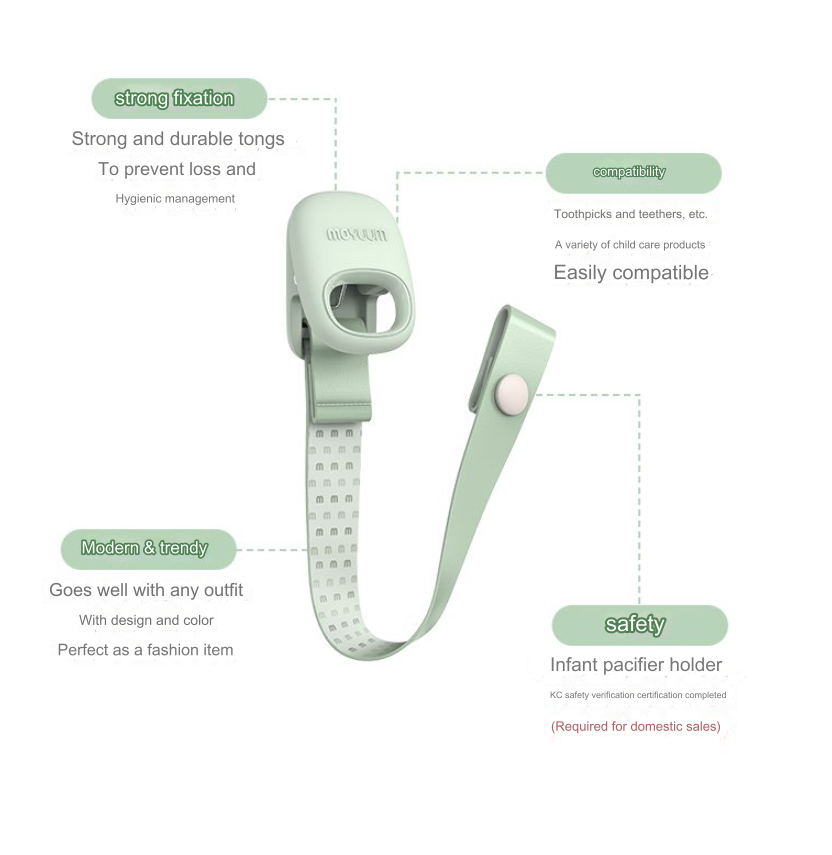 Moyuum Pacifier & Teether Clip keeps your baby's pacifier or teether clean and handy with a stylish design. It's safety-certified and made with comfortable, food-grade silicone to keep items off the floor. The clip's double spring design is said to be more secure than single springs, preventing twisting or malfunctioning, and it's designed to be gentle on your baby's clothes.