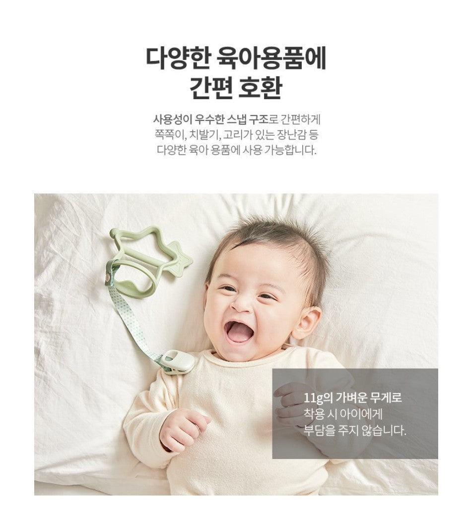 - Designed for easy attachment to pacifiers and teethers