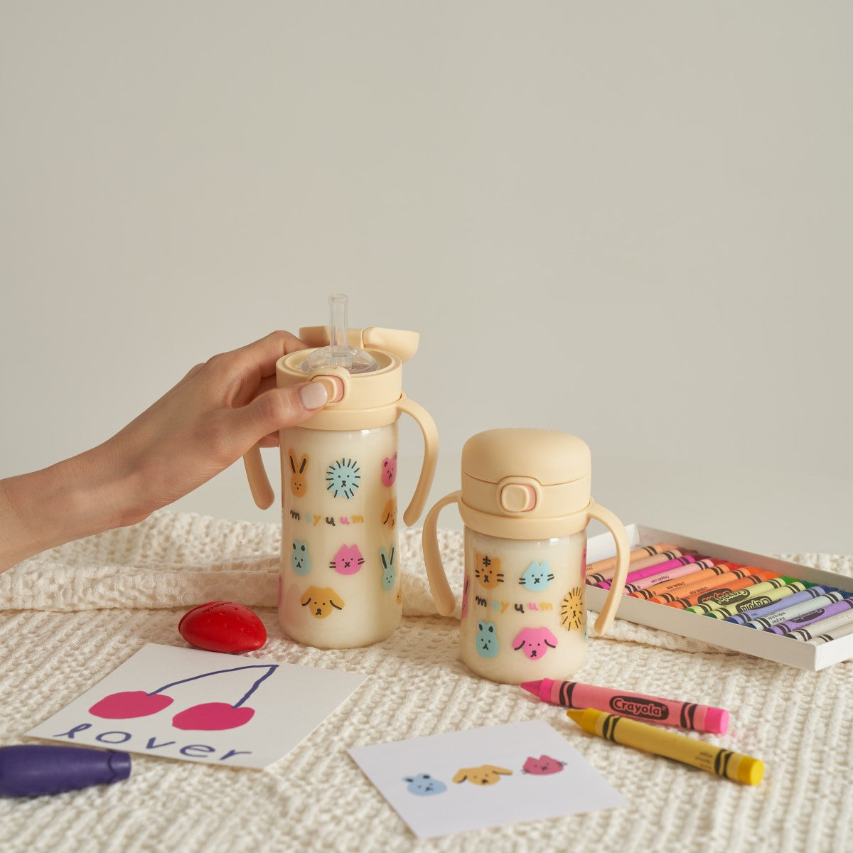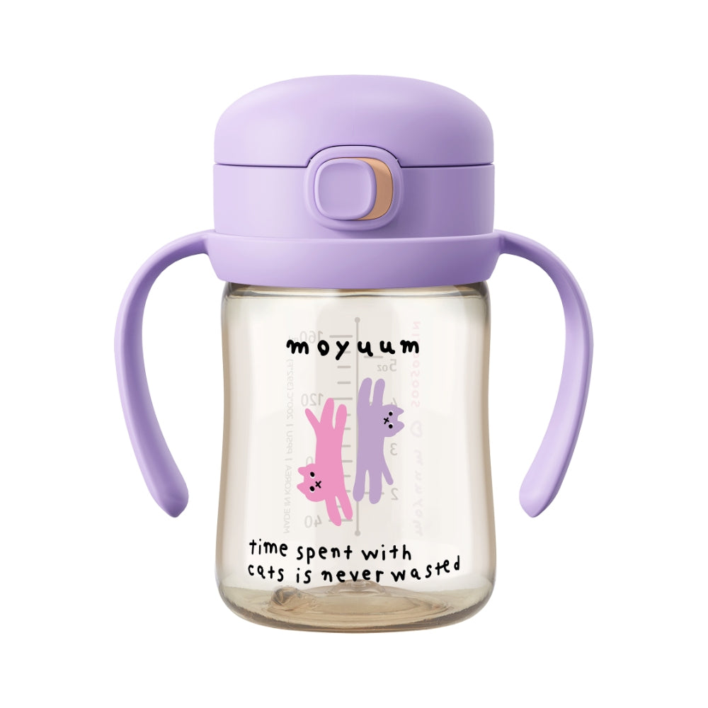 Moyuum PPSU All-in-One One-Touch Straw Cup is a child-friendly solution for hassle-free sipping. With its intuitive one-touch cap, kids can effortlessly open the bottle with a single touch, while a clever locking mechanism prevents any spills. Its innovative 260-degree hinge design guarantees unobstructed vision during drinking, ensuring child safety. The patented 360-degree straw allows children to drink freely from any angle, making independent hydration a breeze. It also has a cross-cut straw that prevents leak and backflow.