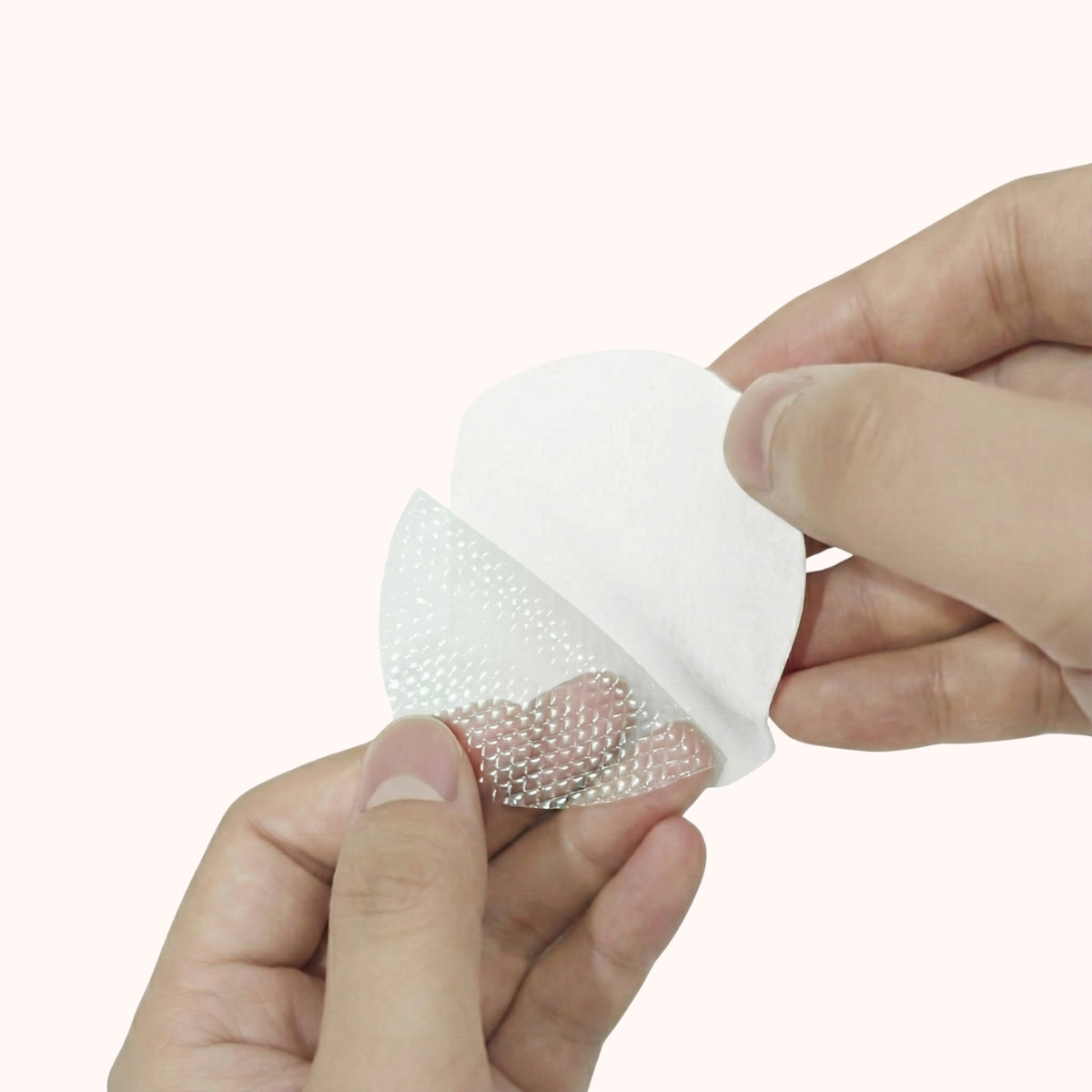 - Wash your hands, remove the protective film, and place the gel side directly over the nipple.