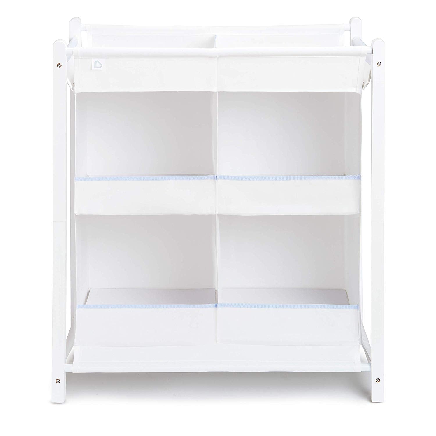 Munchkin Nursery Essentials Organizer is a baby storage solution that is both enormously useful and aesthetically pleasing as well - its neutral white color and chocolate trim is sure to fit in with any nursery decor. Keep all your baby paraphernalia in one place with the Nursery Essentials Organizer by Munchkin. Key items such as diapers and baby wipes can be kept in plain view in the top storage area, while bulkier items like blankets, clothing, and towels can be placed in the four large storage bins below. Skip hunting for stuffs and dive straight to the item you need with this organizer.
