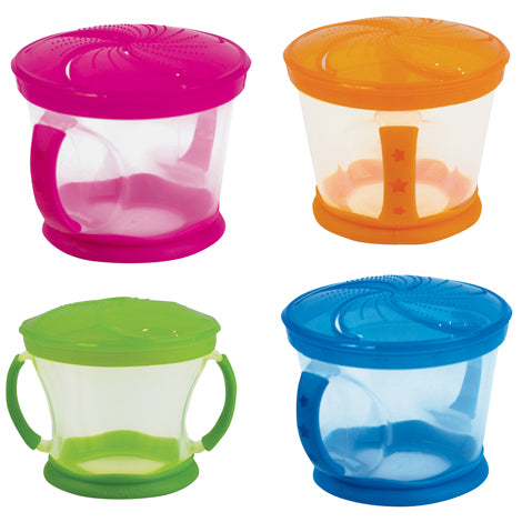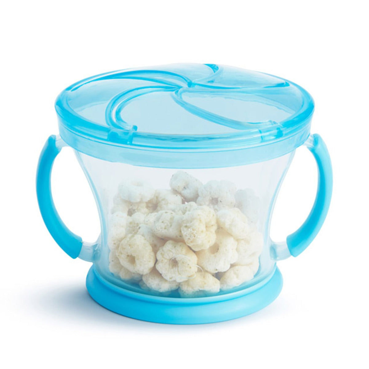 Munchkin Snack Catcher is a clever lidded snack cup with soft flaps to reduce spills and mess for independent toddlers! Snacks are kept safe in the container, even if it tips over, until little fingers gleefully reach in to pull them out. ! This portable snack bowl allows independent toddlers to self-feed with a bit more dexterity and a lot less mess. Kids love accessing snacks all by themselves through the soft, flexible flaps, and moms love that those same flaps help prevent food spills all over the house and car.