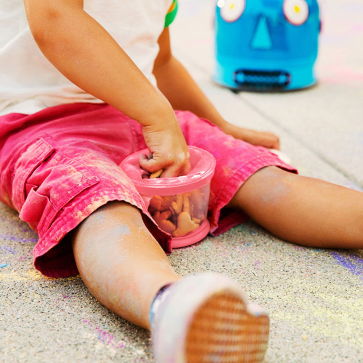 Each spill-proof Snack Catcher® cup has two handles designed for even the littlest hands to grasp easily, and a no-slip rubber bottom to keep it in place on the dinner table, in the high chair, or during lunchtime at school. Snack Catcher® food containers are a must-have for toddlers on the move. And because snacks come out only when they want them to, snack time no longer means food everywhere except your child’s mouth. Win-win for all!