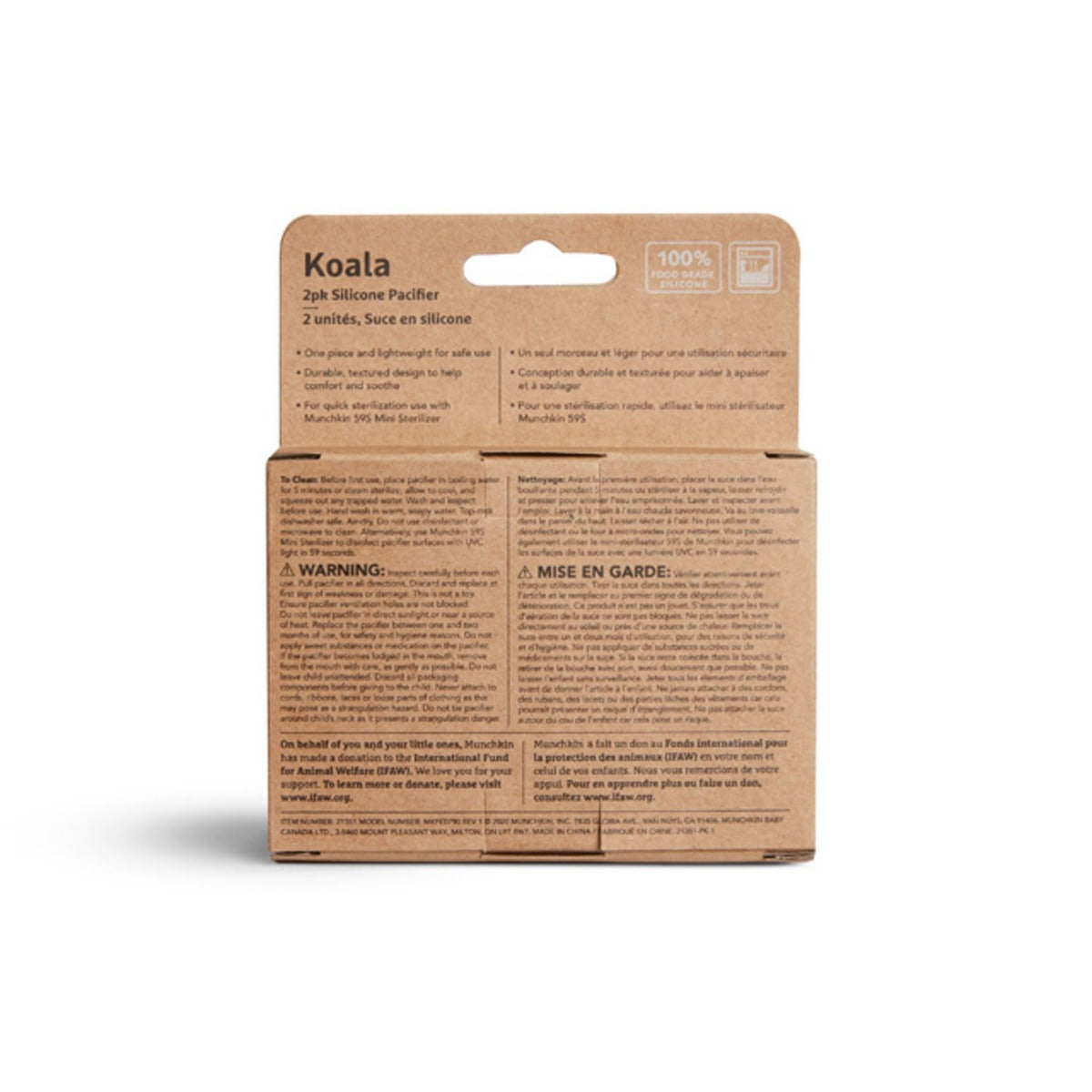 Munchkin WildLove Koala Pacifier is a 100% food-grade silicone, lightweight one-piece pacifier. specially designed to safely soothe your own little joey. Born to be wild! Meet the newerst member of the WildLove family. Spreading love, one pacifier at a time!