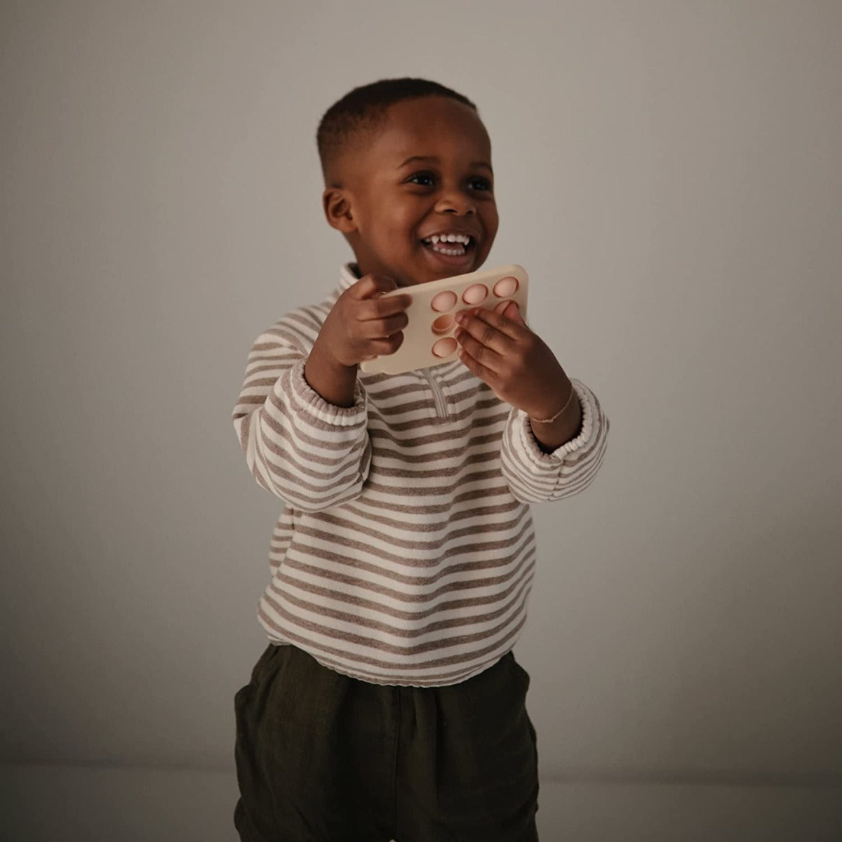 Mushie Phone Press Toy is an adorable toy made for little hands, that encourages sensory exploration and the development of fine motor skills with its simple design and soft colours. Featuring food-grade silicone and a BPA-free plastic frame, children will tap into learning as they press the bubbles and hear a gentle pop. This toy is inspired by technology and holds the attention of babies and older kids with endless opportunities for play.