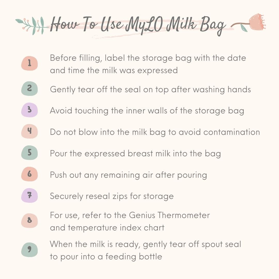 - Clean and safe - MyLO Breast Milk Storage Bag ensures cleanliness is pre-sterilized and uses only baby-safe material that is free from carcinogens (BPA Free)