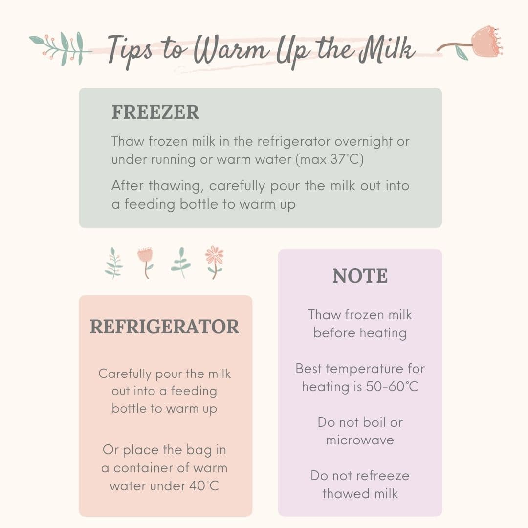 However, with MyLO Breast Milk Storage Bag, you don't have to test the temperature with your wrist anymore! The breast milk temperature will be indicated on the milk bag's temperature chart. No more cold or hot milk for your baby!