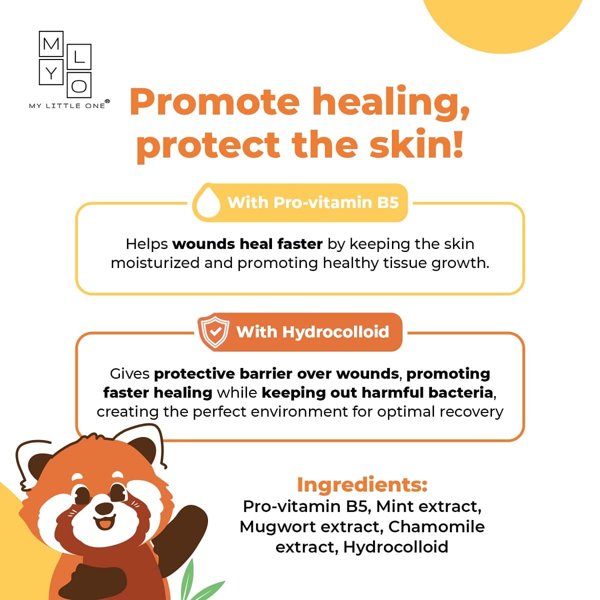 MyLO ScratchGuard Relief PatchΒ is a hydrocolloid shield that keeps your little one's skin safe and sound, no matter what adventures they embark on. Whether they're exploring the great outdoors or simply enjoying some playtime indoors, our ScratchGuard is their trusty sidekick. Hydrocolloid is a gentle yet powerful healer that forms a protective barrier over wounds, promoting faster healing while keeping out harmful bacteria. It creates the perfect environment for optimal recovery.Β