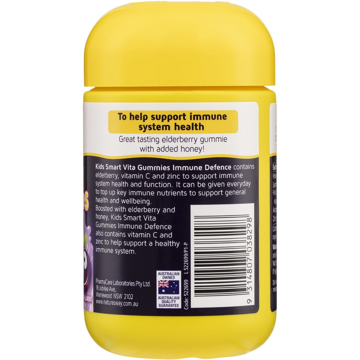 Nature's Way Kids Smart Vita Gummies Immune Defence contains elderberry, vitamin C and zinc to support immune system health and function. It can be given everyday to top up key immune nutrients to support general health and wellbeing. Boosted with elderberry and honey, Kids Smart Vita Gummies Immune Defense also contains vitamin C and zinc to help support a healthy immune system.