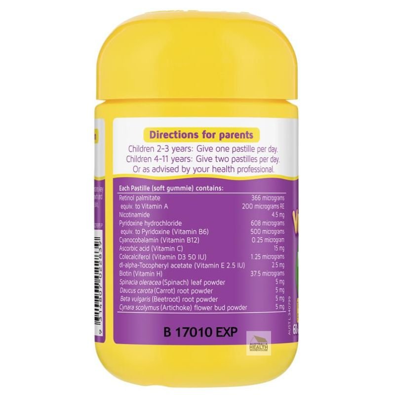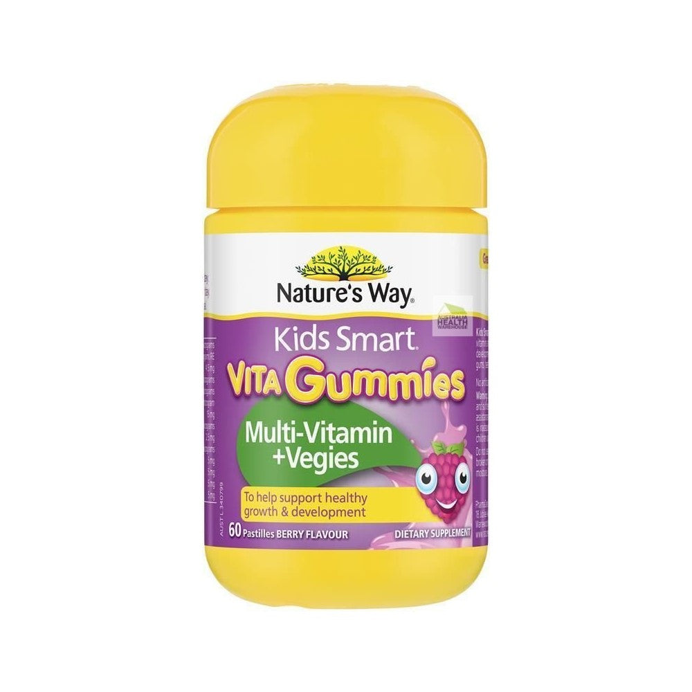 Nature's Way Kids Smart Vita Gummies Multi-Vitamin + Vegies combines a multivitamin and vegetable powders to help with the intake of essential nutrients to support kids healthy growth and development. It is a delicious berry-flavoured chewable pastille (gummies) that your children will love!