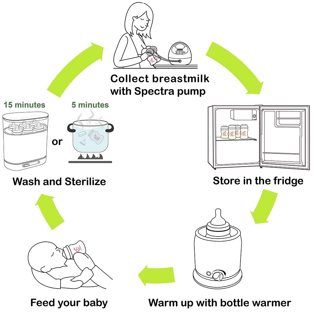 - Store in the refrigerator, warm up, insert the nipples and feed your baby. No transfers, no wastage, less parts to wash.