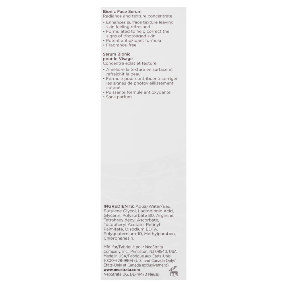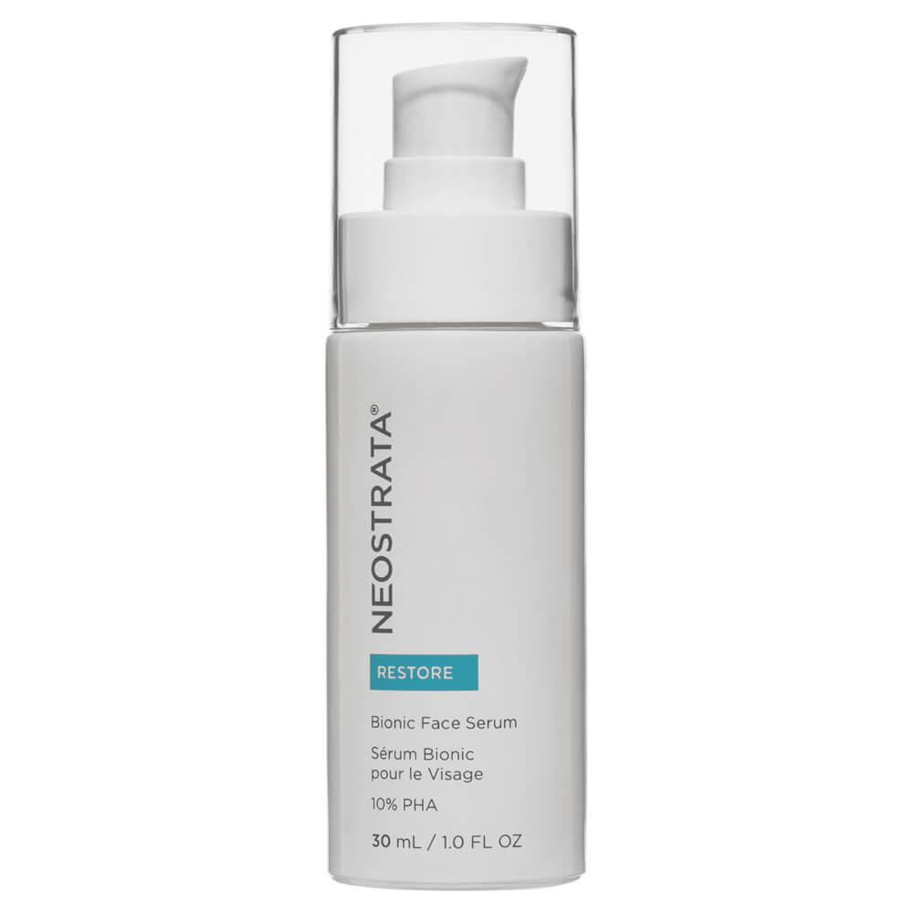 Neostrata Restore Bionic Face Serum is a high-strength 10% Bionic serum designed to create a protective layer to help restore a youthful appearance to dry and sensitive skin. It contains a Polyhydroxy Acid, a potent antioxidant to help replensh skin’s moisture barrier and protect against environmental factors.