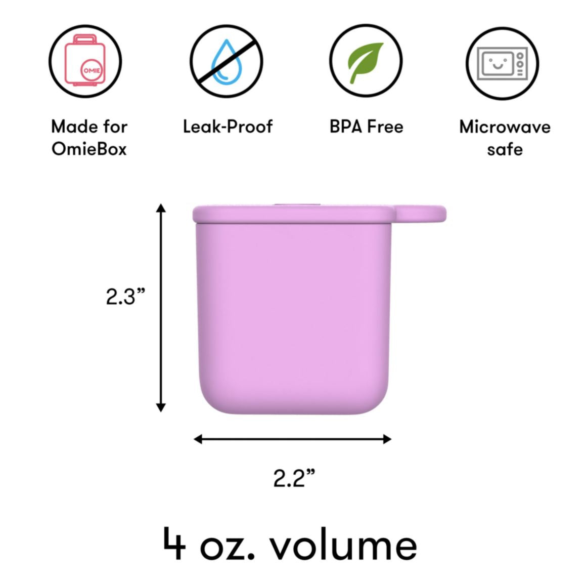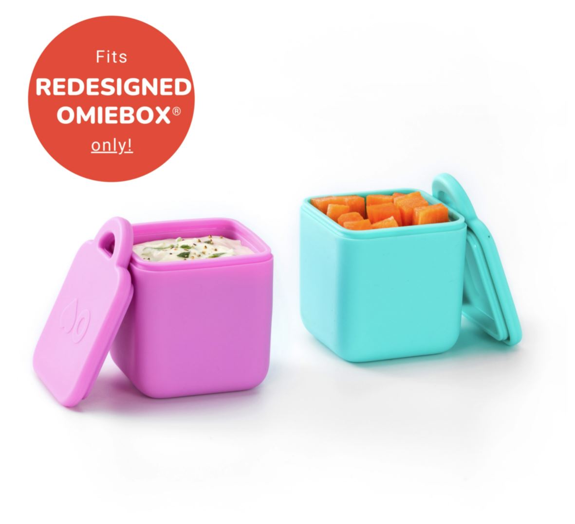 OmieBox OmieDip is a perfect way to pack dips & sauces for your Redesigned V2 OmieBox. OmieDip fits perfectly right inside the box and it is 100% leakproof, perfect for sauces, dips & yoghurt. It can also be used to create partitions inside Omiebox. And of course, it is great on its own. OmieDip doubles as snack containers on the go! Each OmieDip has a 4 oz. capacity. Think of that as ⅔ of a blueberry clamshell, or half a cup of goldfish crackers. Perfectly when you’re on the run and want to take some healthy snacks with you.