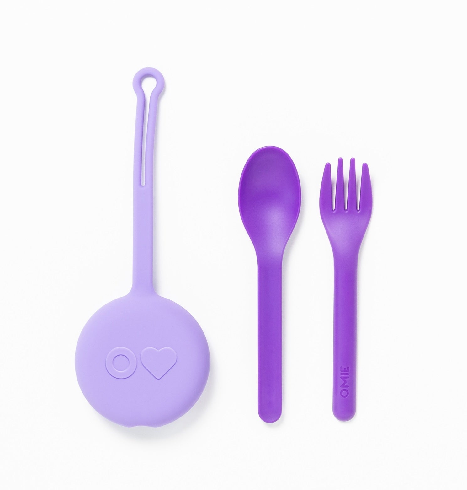 OmieBox OmiePod Utensil & Holder Set consists of a fork, spoon and a utensil travel holder. The silicone utensil holder is rounded with a slot hole to fit the head of utensils inside it. The handle of the fork and spoon will hang out. The holder comes with a tail with a small loop at the end such that you can hang the entire set onto anything that has a keyhole, from the handles of your Omiebox to zippers of your bag. This is a perfect accessory to go with packed school lunchboxes (Omiebox!), eating outdoors and picnics.