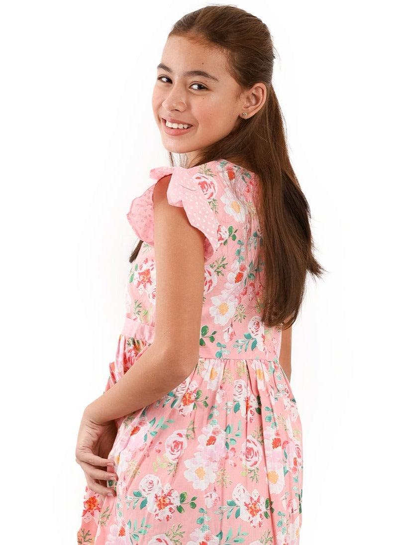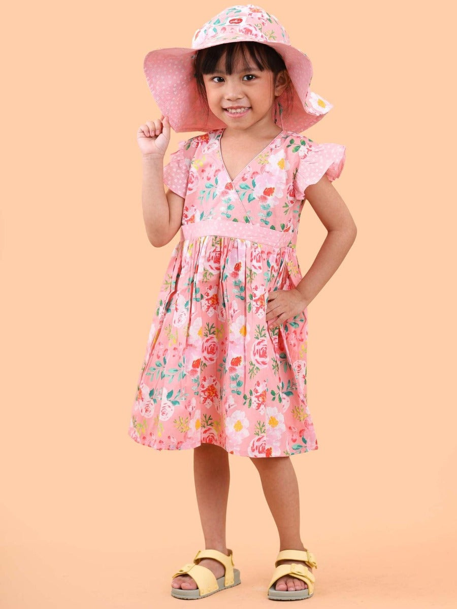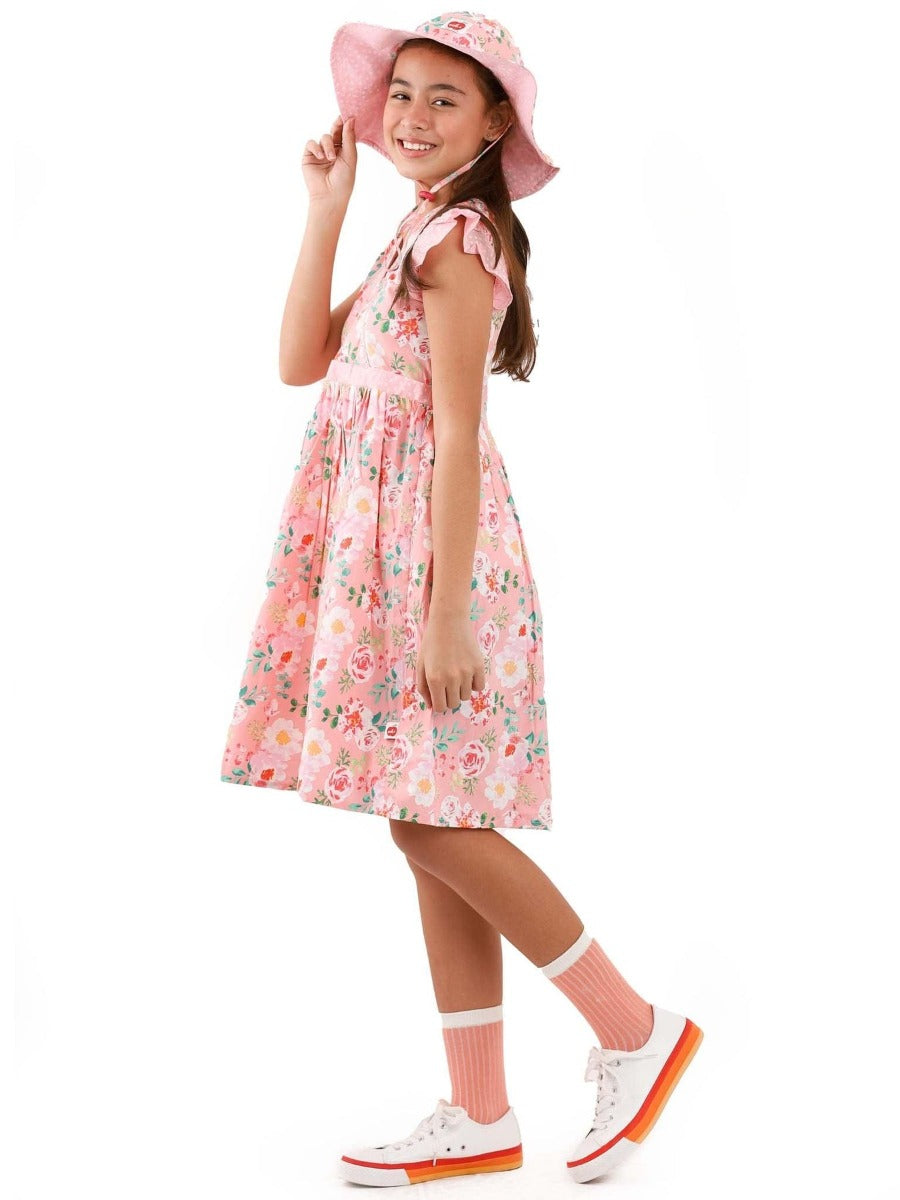 Oobi Adriana Pink Watercolor Dress is the sweetest little criss-cross front dress, Adriana has trims in our own in-house cotton, and Watercolour is hand printed on vintage screens. Old world, delicate floral, an easy-to-wear style, and the perfect summer or party dress for little girls.