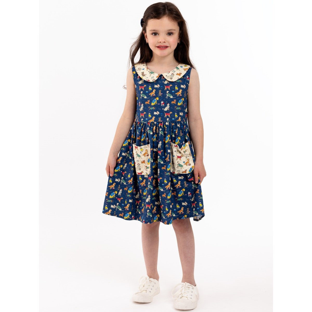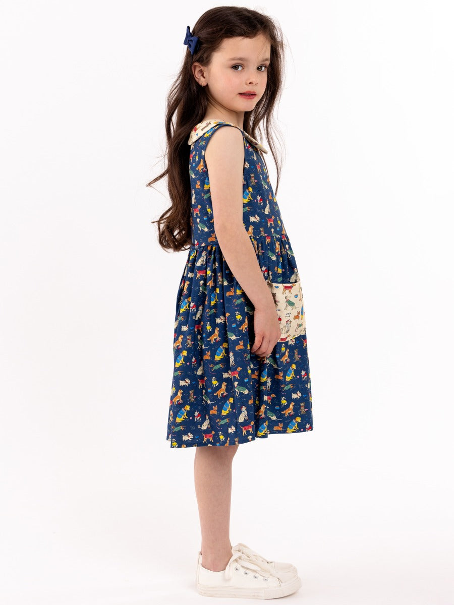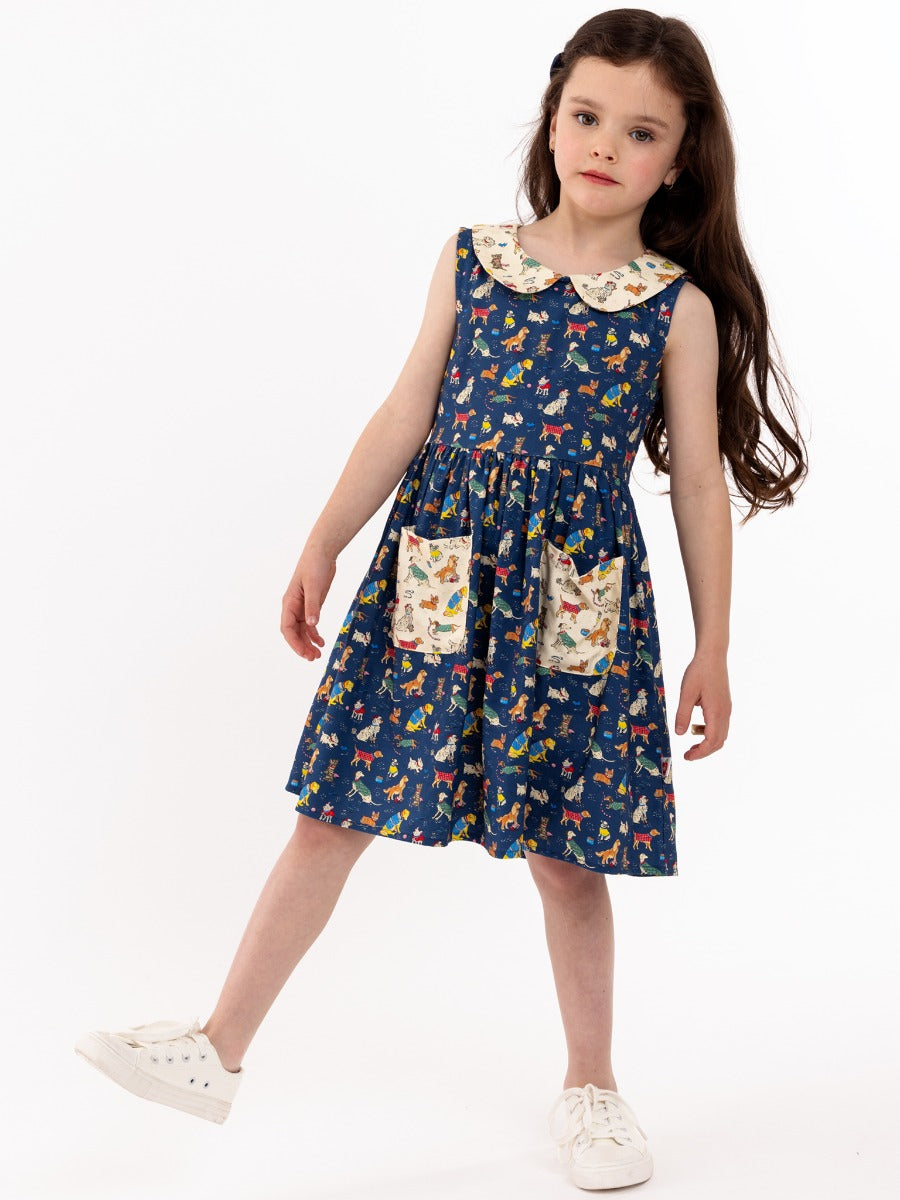 Oobi Peter-Pan Collared Dress Bow Wow Wow is deliciously retro, a Peter Pan collar and our Bow-Wow-Wow print is the perfect pairing for the 1950s vibe. Zippered at the back and featuring an adorable collar and pockets too. With treasured pups from terriers to cheeky sausages, to chubby labs, we love them