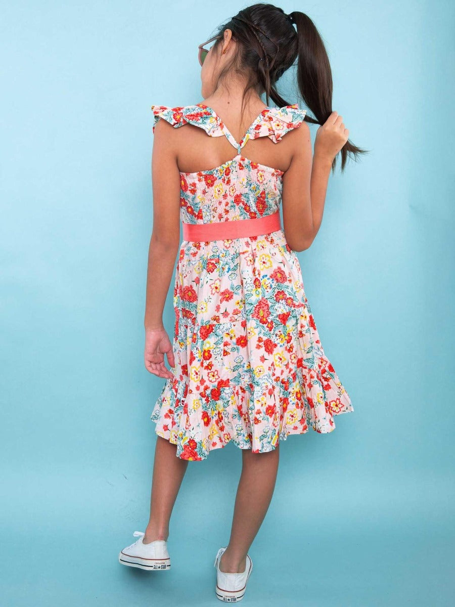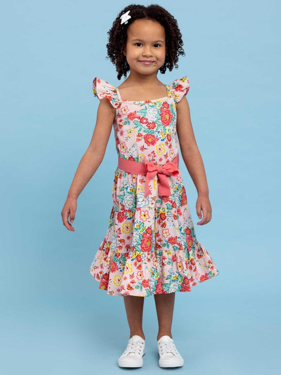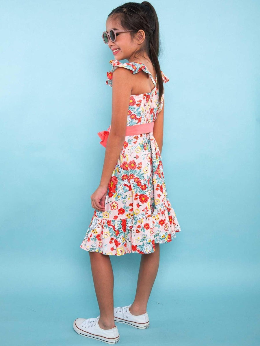 Oobi Wild Meadow Angel Dress is a dress with gentle ruching and a crisscross back, plus sun coverage for the shoulders. Designed for the perfect fit with colour. We've also included a ribbon tie - for the waist, for the hair, for whatever! We couldn't resist. However the dress can be worn with or without the tie belt. We've named her Angel because she's got wings.
