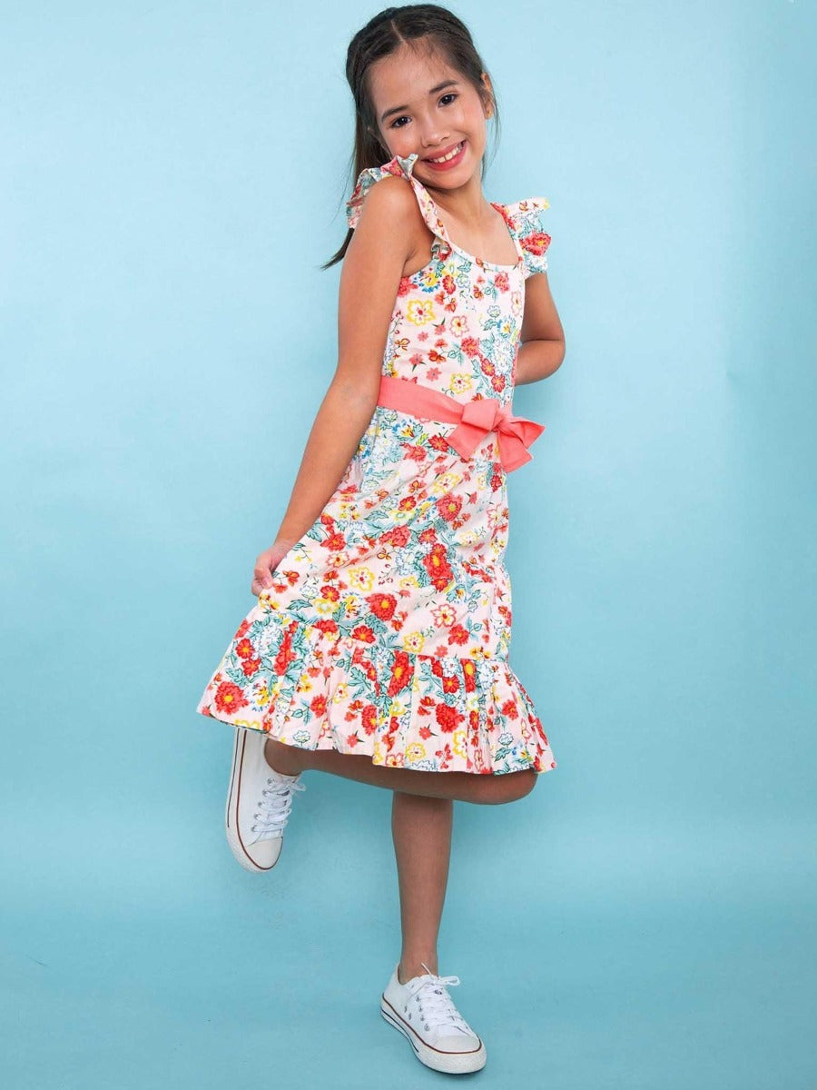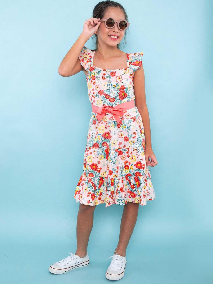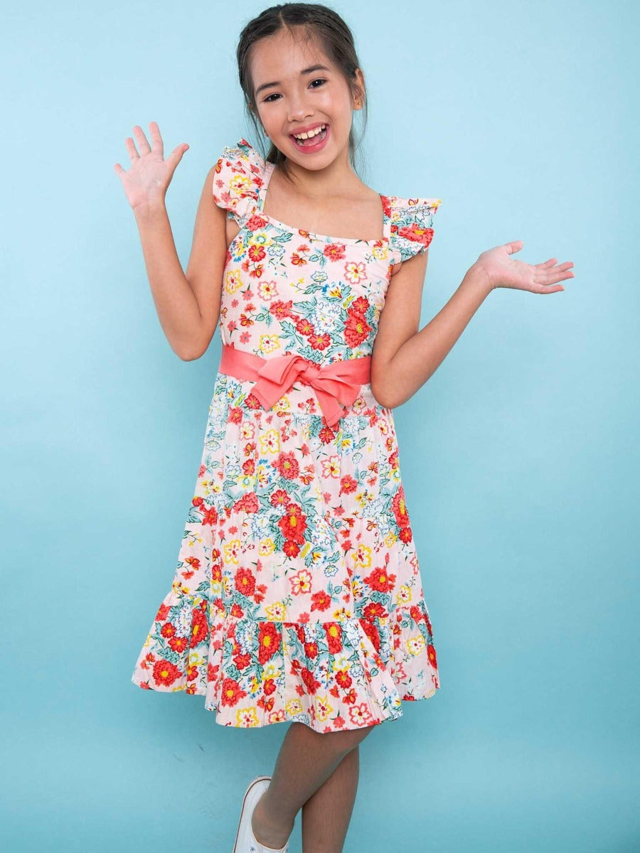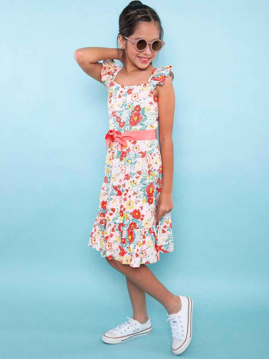 Oobi Wild Meadow Angel Dress is a dress with gentle ruching and a crisscross back, plus sun coverage for the shoulders. Designed for the perfect fit with colour. We've also included a ribbon tie - for the waist, for the hair, for whatever! We couldn't resist. However the dress can be worn with or without the tie belt. We've named her Angel because she's got wings.