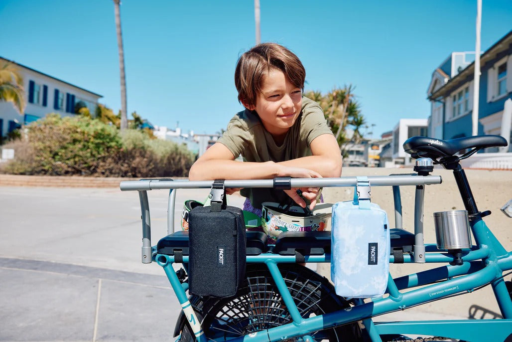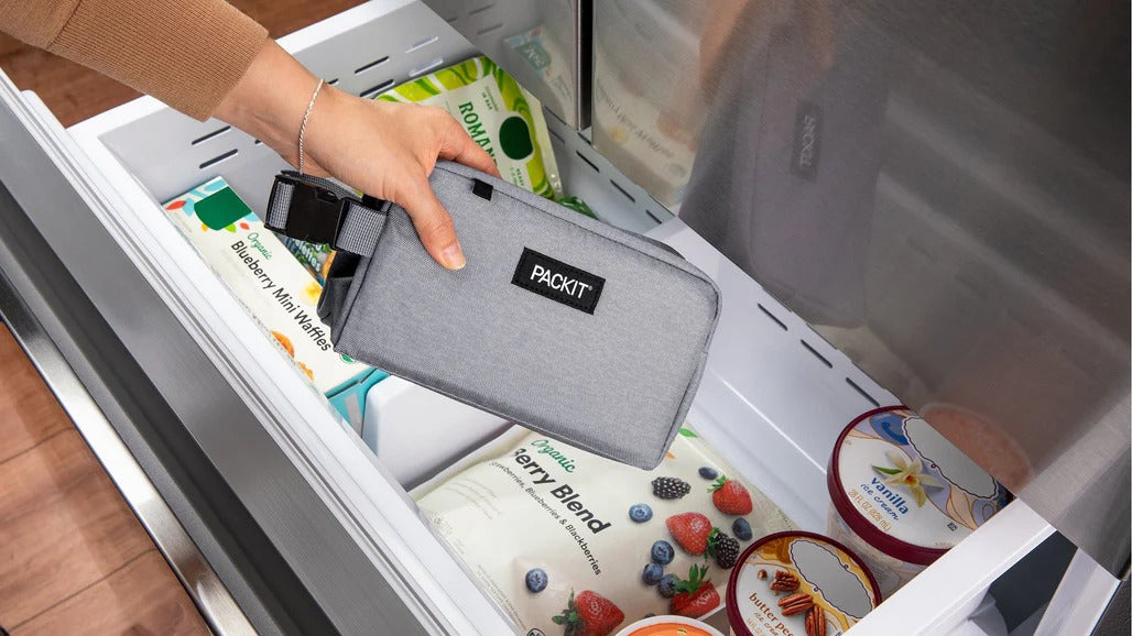 PackIt Freezable Snack Box is a roomy yet small-ish freezable snack box that is small than PackIt’s Original Lunch Bag, making it ideal for fresh snacks on the go. It is also designed to fit inside backpacks, gym bags and diaper bags. There’s even a buckle handle that clips onto totes, backpacks and strollers. Like all of our other freezable coolers, it is designed with PackIt's patented EcoFreeze™ technology: freezable gel built-into the walls of the snack box. Imagine that, a snack box designed to be frozen. It's freezable, it's reusable, and it actually cools.